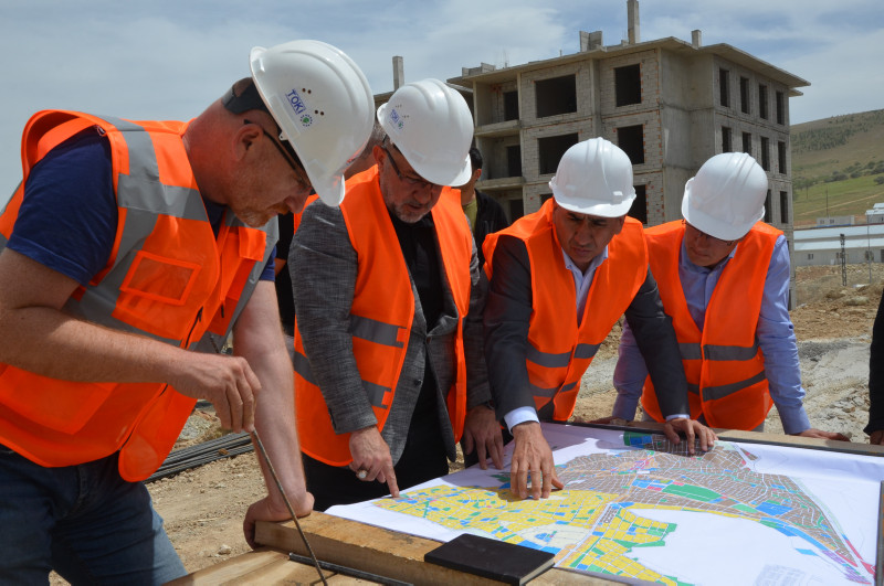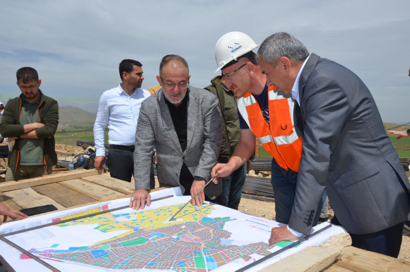 Afşin Belediye Başkanı Mehmet Fatih Güven, TOKİ tarafından 1091 konutun yapılacağı alanda incelemede bulundu.