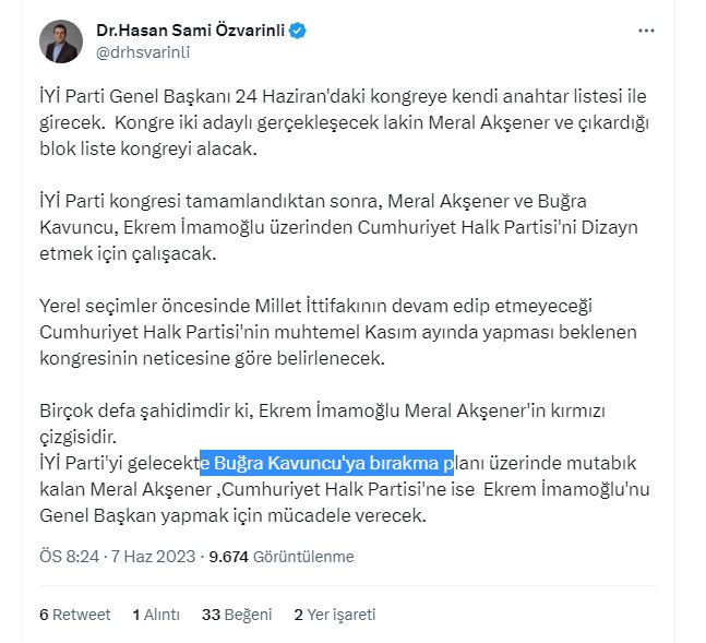 Meral Akşener'in eski danışmanı Dr. Hasan Sami Özvarinli, sosyal medya hesabından önemli iddialarda bulundu.