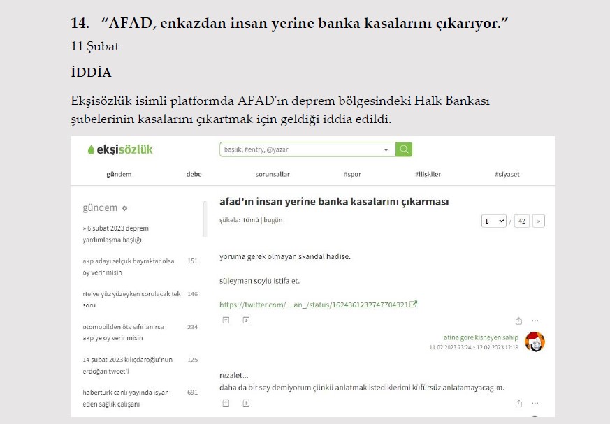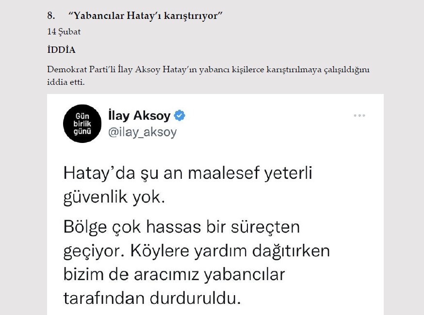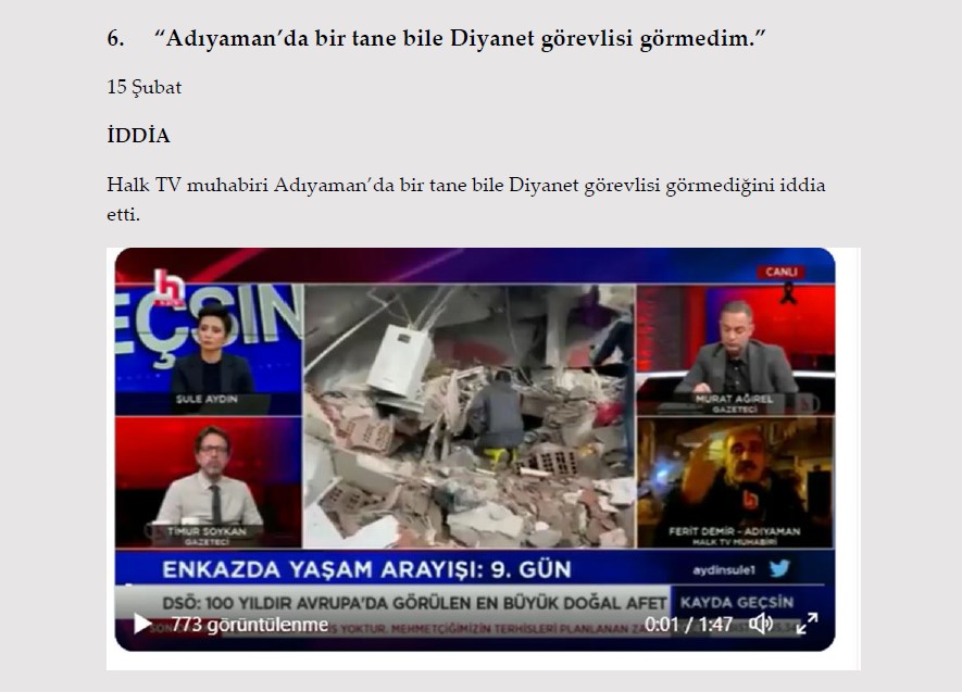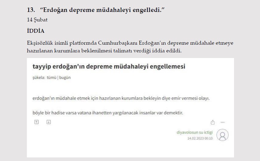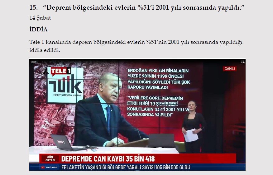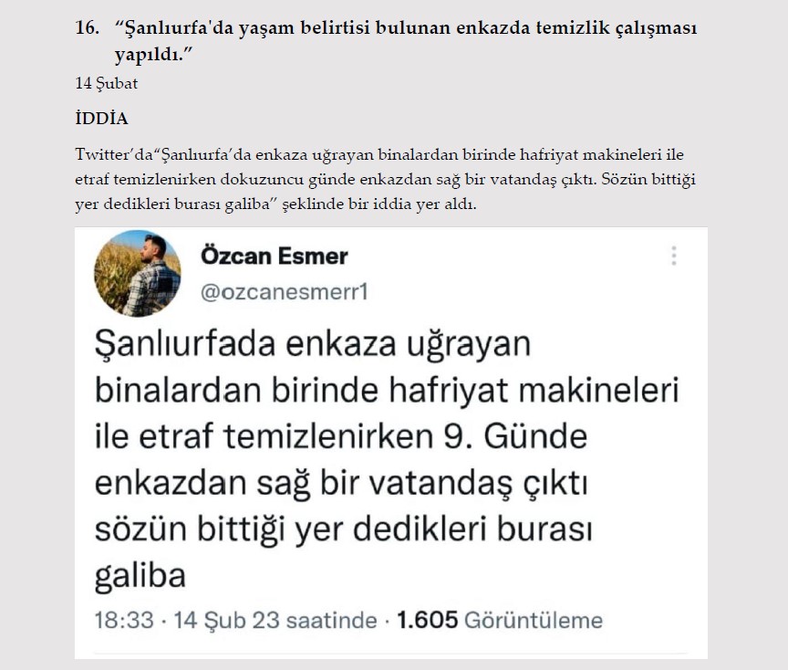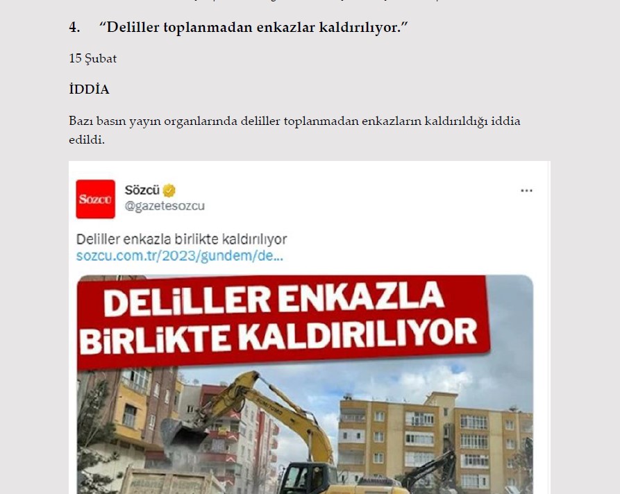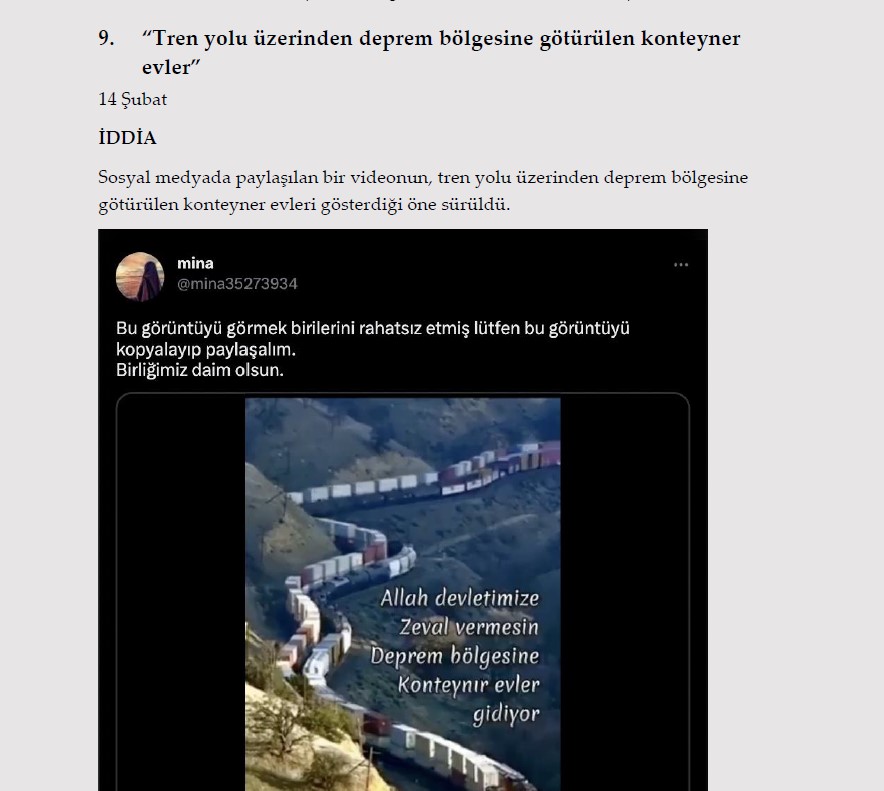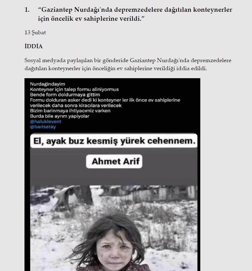 1. "Gaziantep Nurdağı'nda depremzedelere dağıtılan konteynerler için öncelik ev sahiplerine verildi." 13 Şubat İDDİA