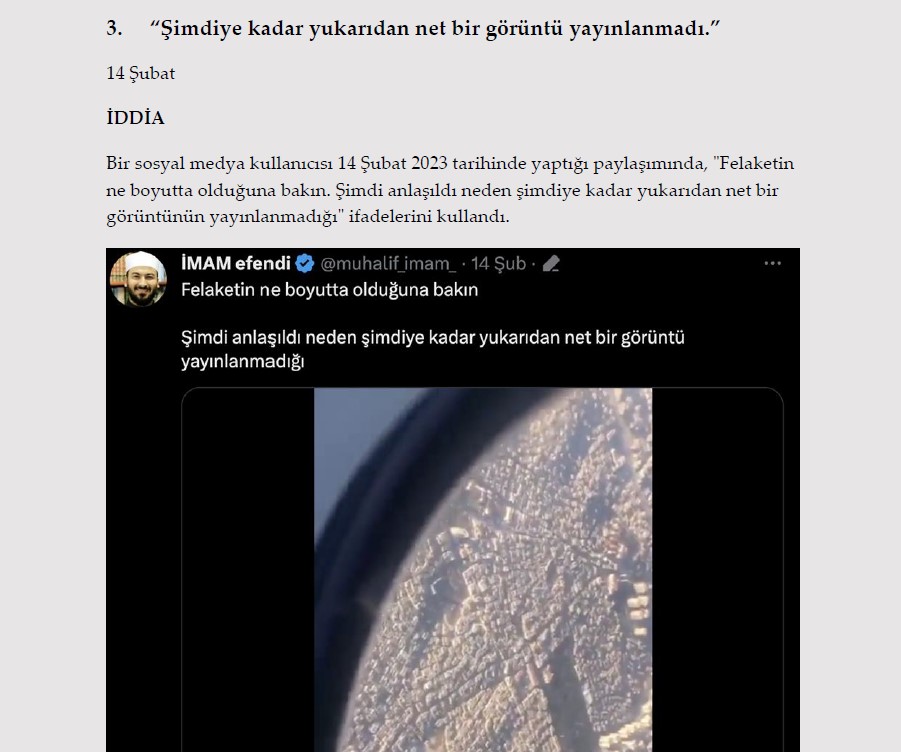 3. "Şimdiye kadar yukarıdan net bir görüntü yayınlanmadı." 14 Şubat İDDİA