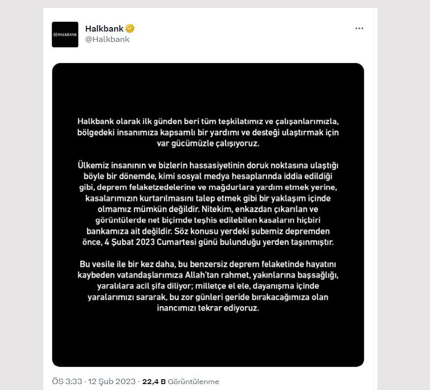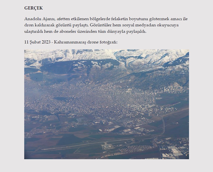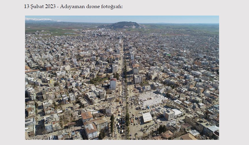 Bir sosyal medya kullanıcısı 14 Şubat 2023 tarihinde yaptığı paylaşımında, "Felaketin ne boyutta olduğuna bakın. Şimdi anlaşıldı neden şimdiye kadar yukarıdan net bir görüntünün yayınlanmadığı" ifadelerini kullandı.