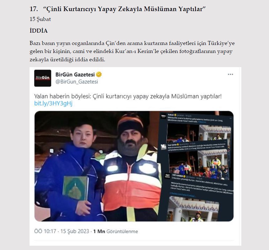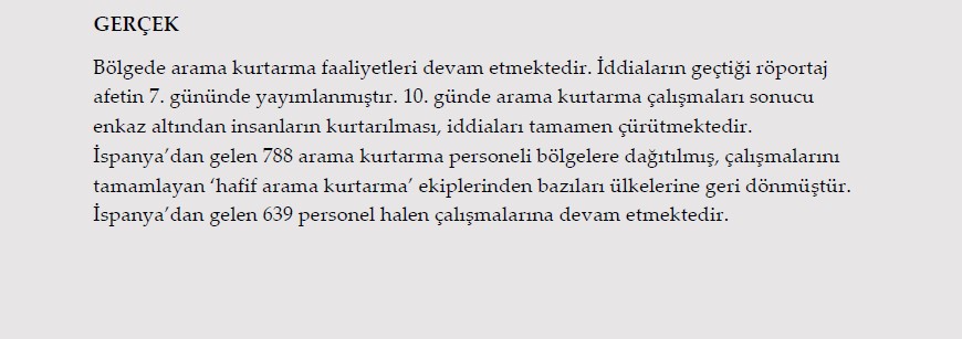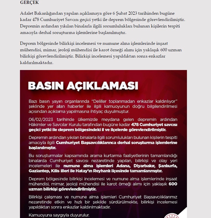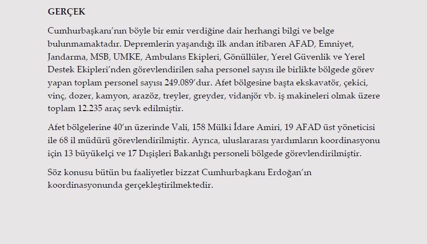 Kahramanmaraş'ta meydana gelen ve 10 ilde etkilin olan 7,7 ile 7,6'lık depremler sonrası devlet tüm kurumlarıyla yaraları sarmaya devam ediyor. Devlet ve milletin verdiği kıyasıya mücadele tüm dünyaya örnek oldu. Fakat sosyal medyada dolaşan asılsız iddialar, dezenformasyon ve algı operasyonları bu çalışmaları olumsuz yönde etkiliyor. Gündeme gelen tüm iddialar ve gerçeklerin verildiği https://afetyalanlari.com internet sitesi yayına girmiştir. İşte sosyal medyada dolaşan asılsız iddialar ve gerçekleri….