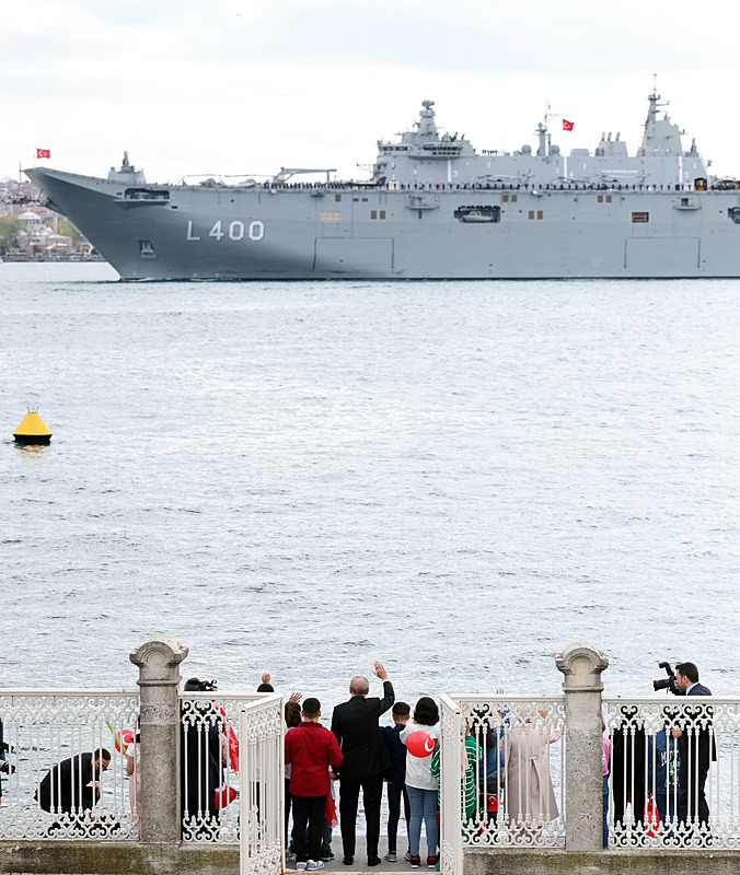 TCG Anadolu'nun, TEKNOFEST Mavi Vatan kapsamında İstanbul Boğazı'ndaki geçiş töreni başladı. Donanma unsurları arasında, onarımı tamamlanan Gazi Mustafa Kemal Atatürk'ün yatı TCG Savarona, TCG Oruçreis, TCG İstanbul, TCG Heybeliada, TCG Kalkan, TCG Alanya, TCG Sancaktar ve TCG Hızırreis denizaltısı da yer alıyor. Gemileri Başkan Erdoğan selamladı.