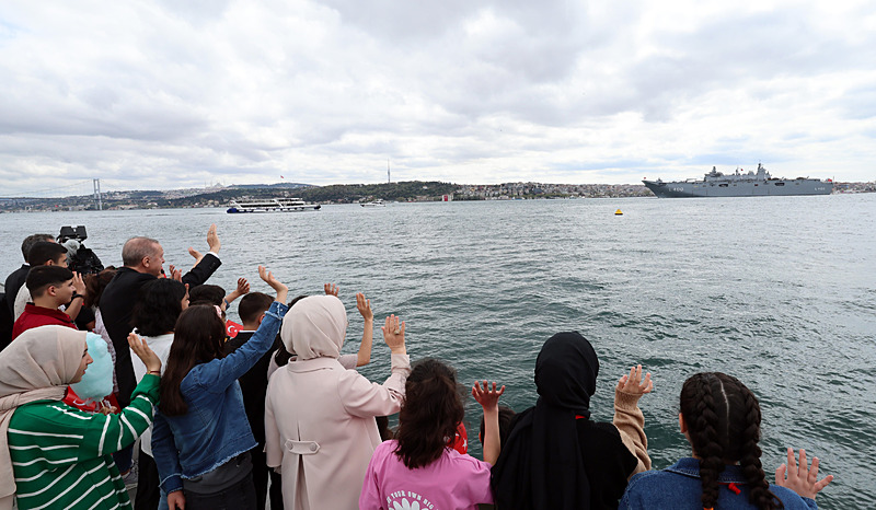 Başkan Erdoğan tek tek selamladı: Boğaz’da ‘Mavi Vatan’ coşkusu! Çanakkale’den İstanbul’a zafer yolculuğu