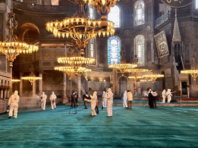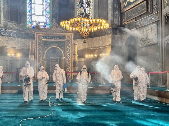 Çalışmalarımız ramazan ayı boyunca 7/24 çalışma esasına göre devam edecek olup her akşam gül suyu sıkılacaktır. Amacımız Ayasofya Camii'yi ziyarete gelenlere daha temiz daha hijyenik bir ortamda ibadet etmelerini sağlanmaktır" ifadelerini kullandı.