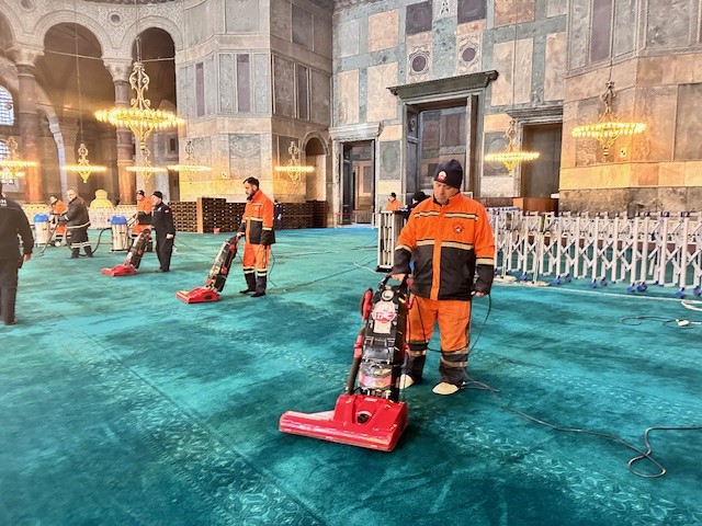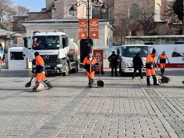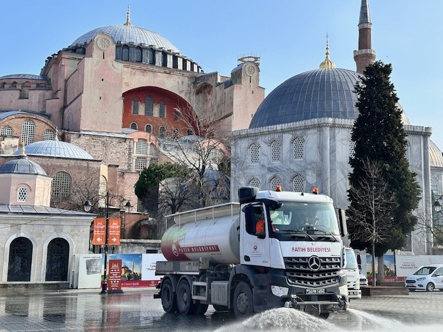 Fatih Belediyesi'ne bağlı Çevre Koruma ve Kontrol Müdürlüğü ekipleri Ramazan ayı öncesinde Fatih Belediyesi, Ayasofya-i Kebir Cami-i Şerifi ve çevresinde temizlik yaptı.