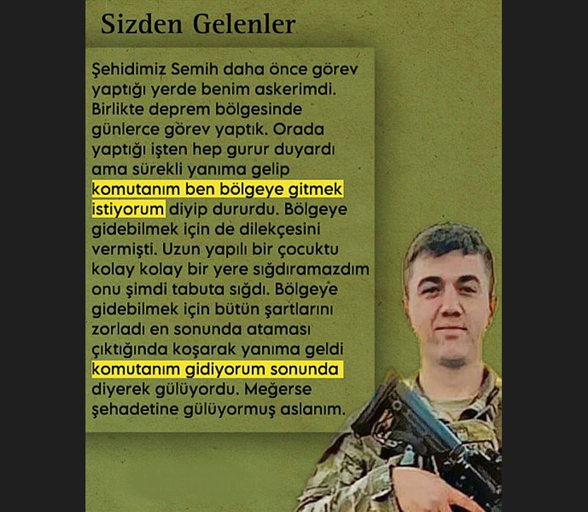Şehitlerimizin şehadete ermeden önceki yakın tarihli video ve fotoğraflarına dair sosyal mecrada yapılan paylaşımlar da yürekleri dağlıyor.