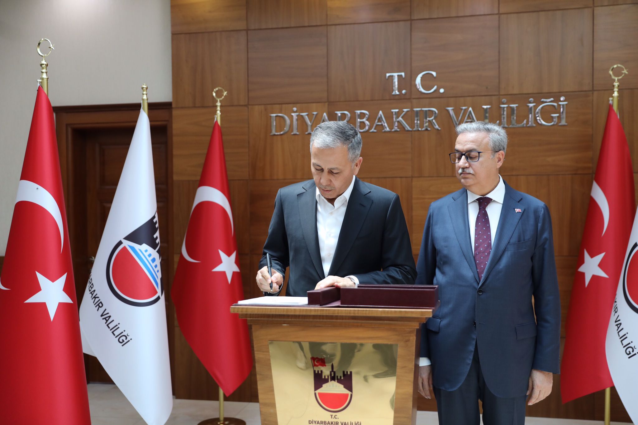 Bakan Yerlikaya "Bugün Diyarbakır'da misafiriz. Göreve başladığımız ilk günden bu yana biz şehirlerimizi geziyoruz. İlk gittiğimiz Samsun'du. Sel sebebiyle gittik. Akabinde Hakkari'ye gittik. Deprem bölgelerindeki şehirlerimize gittik. Bugün de Sayın Valimizden ve kıymetli heyetinden deprem gününden bugüne kadar Diyarbakır'ımızda yapılan hizmetlerin geldiği noktayı aldık yapılacakları birlikte istişare ettik. Dün Van'daydık bugün de Diyarbakır'ımızdayız. Şunu söylememiz lazım Sayın Cumhurbaşkanımızın liderliğinde 21 yılda gerçekten terörle mücadelenin nereden nereye geldiğini görmek çok önemli.