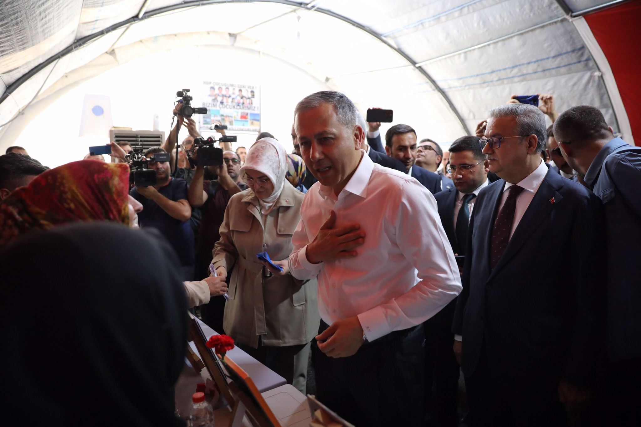 Deprem bölgesini de gezen Bakan Yerlikaya, bayram sonrasında çadırda kalan depremzedelerin konteynerlere taşınacağını söyledi. "Çok büyük bir deprem yaşadık. Asrın felaketini yaşadık. Cumhurbaşkanımızın liderliğiyle asrın dayanışmasını kardeşliğini yaşıyoruz. Depremin ilk anından b yana tüm kurum ve kuruluşlarla beraber şehirlerimizin yanında yer aldık. İlk etapta çadır dağıttık, çadır alanları oluşturduk. Artık bayramdan sonra tesislerde misafir ettiğimiz kardeşleri kira ile ilgili ya da konteynerle buluşturacağız. Çadırda kalan vatandaşlarımızı da konteynere taşıyacağız. Konteyner kentlerdeki evlerde, bir evde olan her şey var. İnternetten klimaya kadar her şey var. Bir kart dağıtacağız. Yemeklerini kendileri alabilecek. Herkes evinde sıcak yemeğini pişirebilecek. Kalıcı konutlar sözü de Cumhurbaşkanımızın verdiği söz doğrultusunda gerçekleştirmek için canla başla çalışıyoruz" bilgisini verdi.