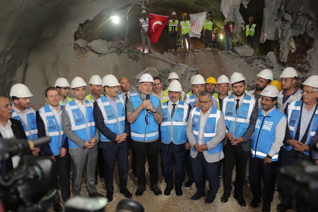 Emek, özveri ve alınterinin buluştuğu T04 Tüneli Ayna birleşim töreni heyecanımıza Ulaştırma ve Altyapı Bakanı Sayın Adil Karaismailoğlu katılımıyla ortak oldu" ifadelerine yer verildi.