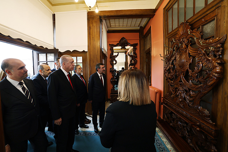 Başkan Erdoğan, Atatürk Müze Köşkü'nde, tarihçi ve yazar Murat Bardakçı ve öteki ilgililer tarafından karşılandı. Erdoğan ve beraberindekiler, açılışın ardından köşkü gezip, yetkililerden bilgi aldı.