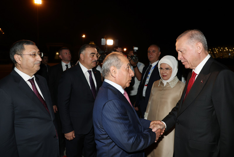 Başkan Erdoğan, Azerbaycan Cumhurbaşkanı İlham Aliyev'in da bulunacağı akşam yemeğine katılmak üzere havalimanından Gülistan Sarayı'na hareket etti.