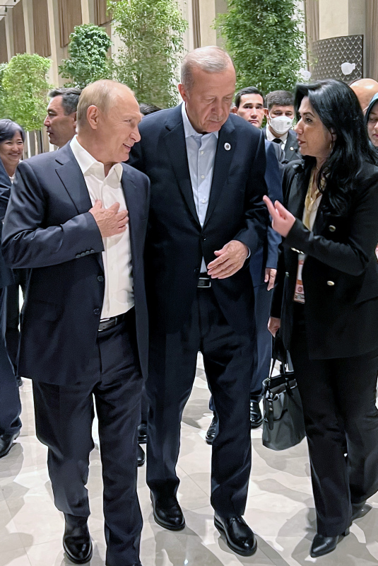 Başkan Erdoğan, komplekste Rusya Devlet Başkanı Vladimir Putin, İran Cumhurbaşkanı İbrahim Reisi, Azerbaycan Cumhurbaşkanı İlham Aliyev, Tacikistan Cumhurbaşkanı İmamali Rahman, Belarus Cumhurbaşkanı Aleksandr Lukaşenko ve diğer liderlerle sohbet etti.