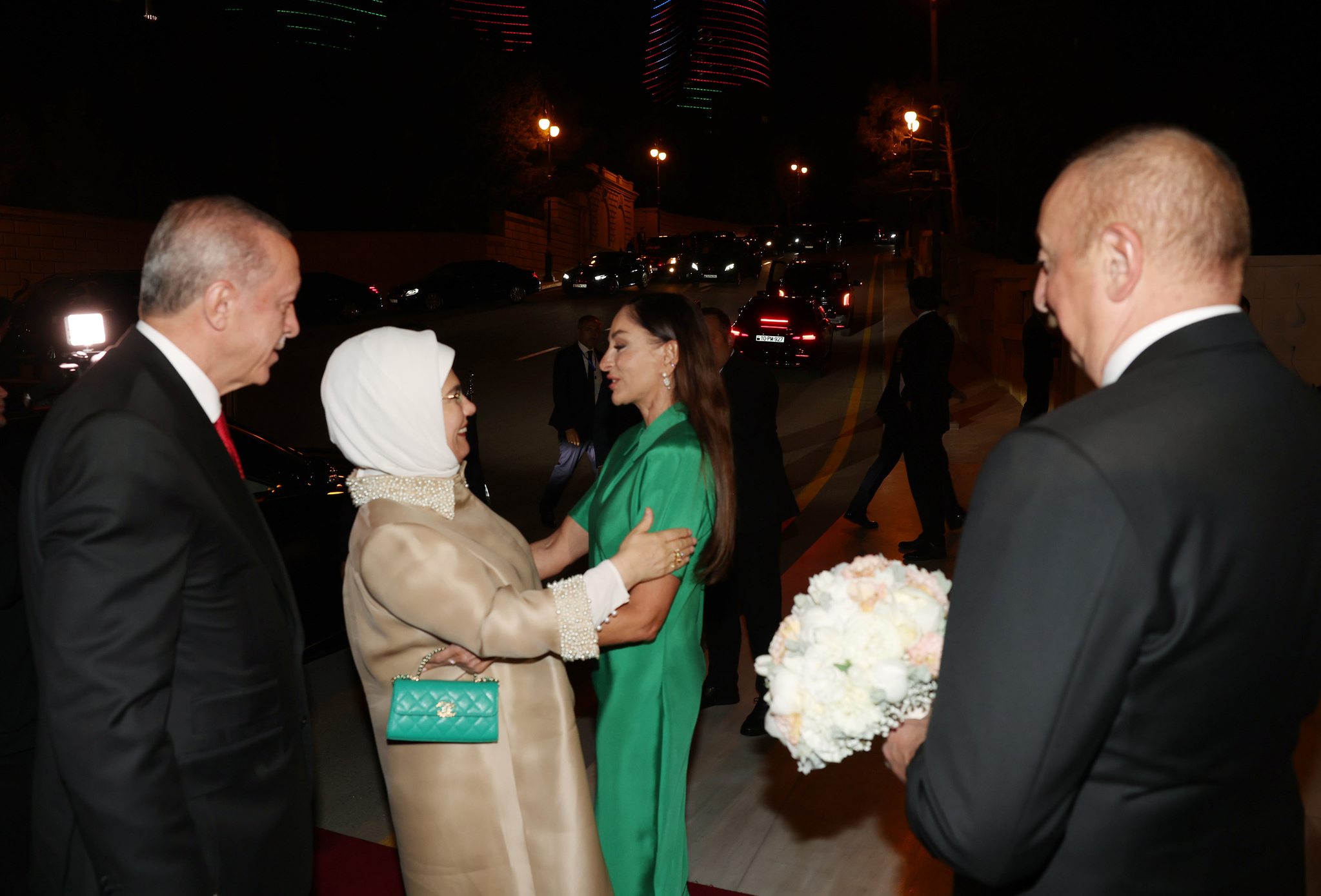 Başkan Erdoğan ve eşi Emine Erdoğan, Azerbaycan'da Cumhurbaşkanı İlham Aliyev ve eşi Mihriban Aliyeva ile yemek yedi.