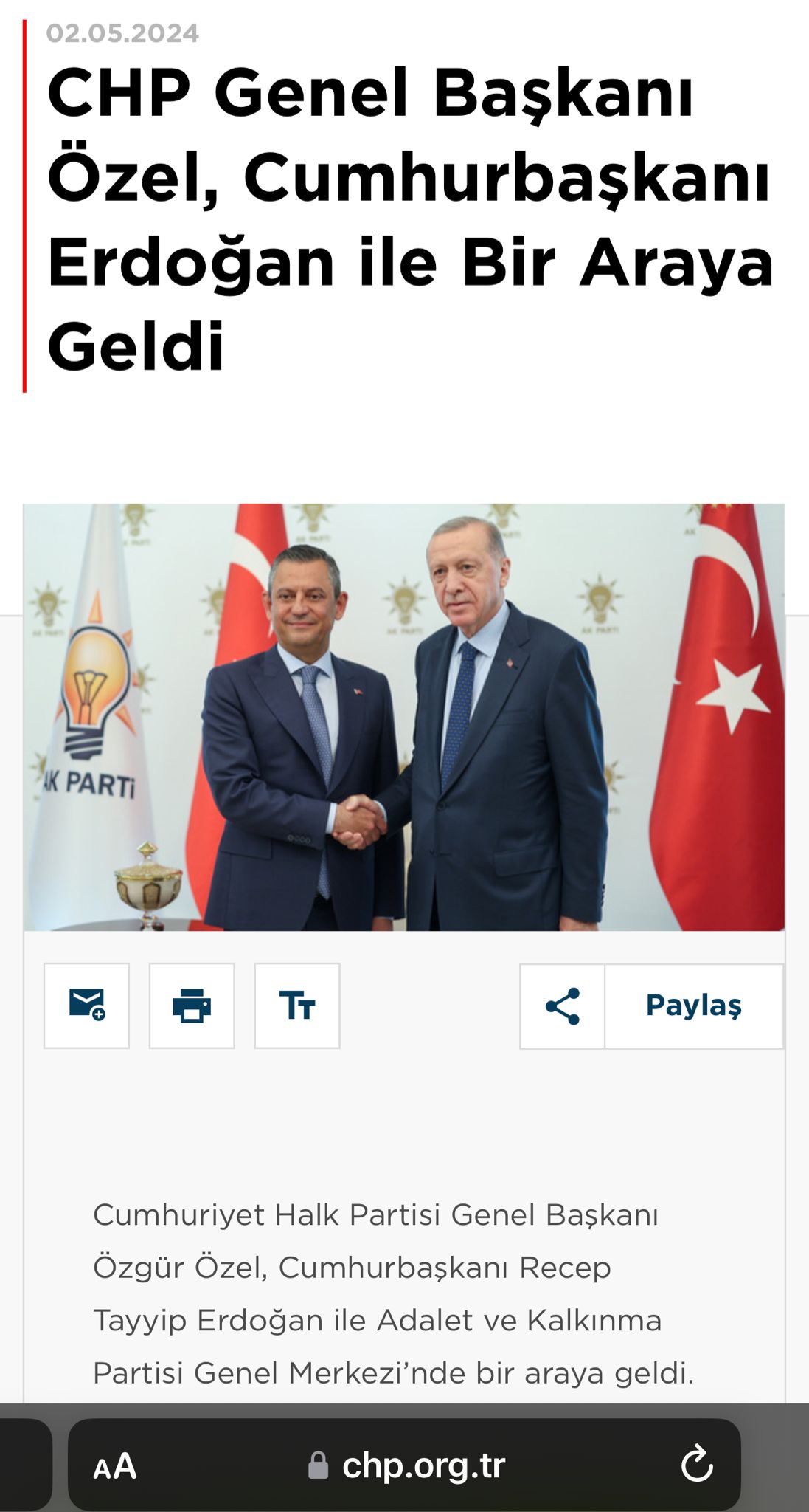 AK Parti ve CHP, 8 yıl aradan sonra tarihi bir buluşma gerçekleştirdi. AK Parti Genel Başkanı ve Cumhurbaşkanı Recep Tayyip Erdoğan, 2 Mayıs'ta AK Parti Genel Merkezinde CHP Genel Başkanı Özgür Özel'i kabul etti.