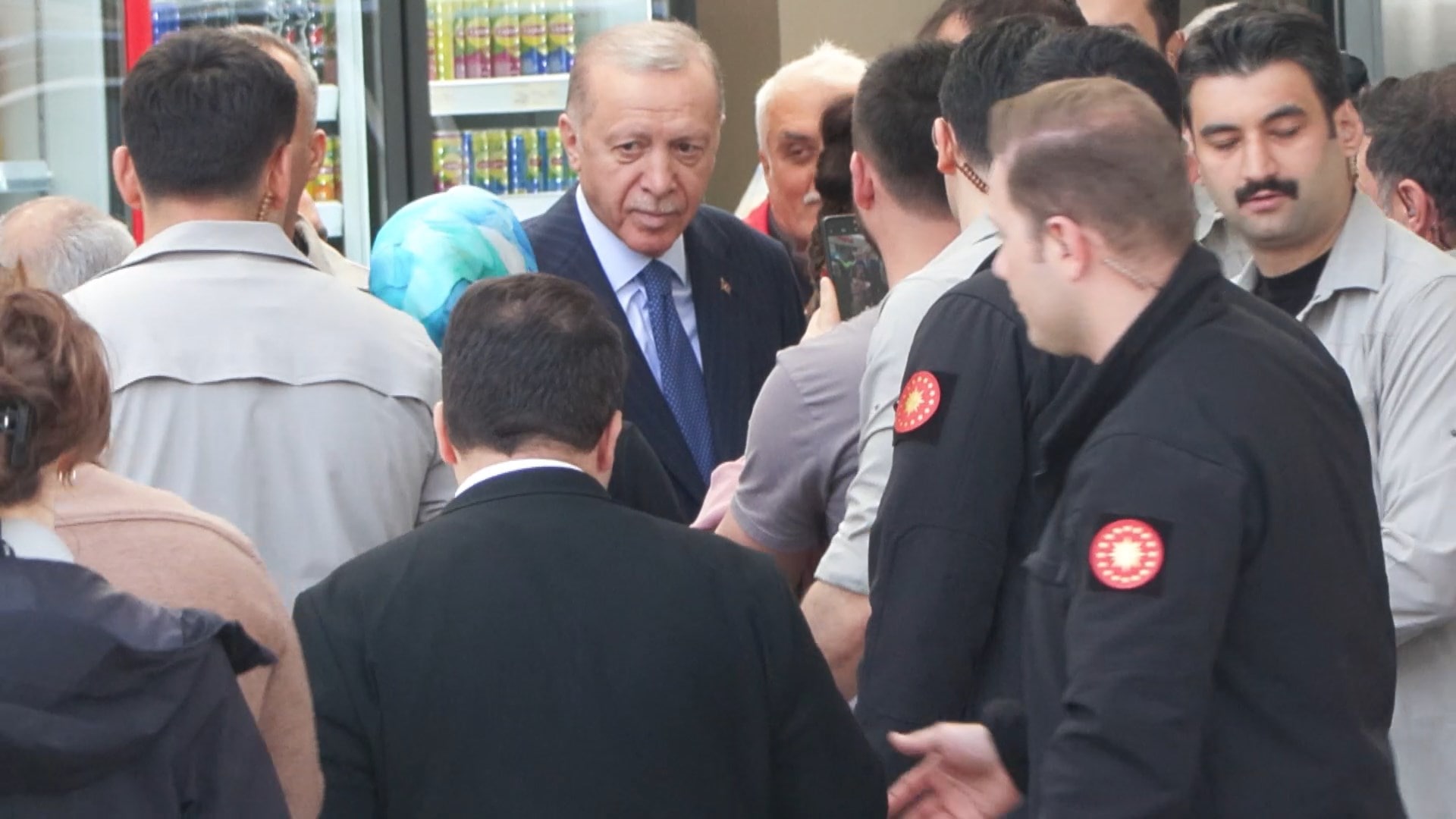 Petrol istasyonundan ayrılan Erdoğan, aynı caddenin Ferah Mahallesi sınırlarında kalan bölümünde kendisine sevgi gösterisinde bulunan bir grup vatandaşın önünde aracını durdurdu.