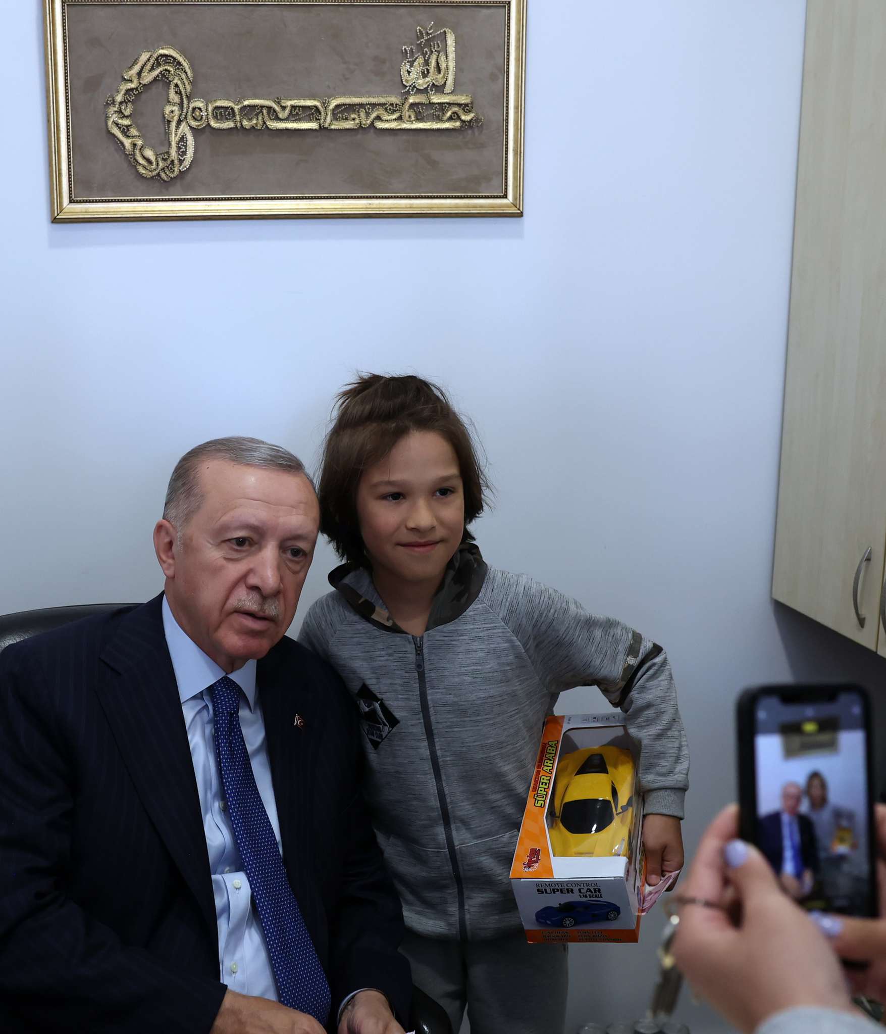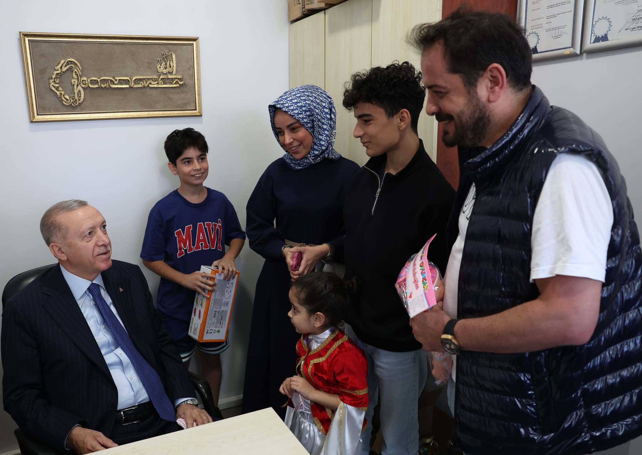 Burada vatandaşlarla sohbet eden Erdoğan, çocuklara oyuncak hediye etti.