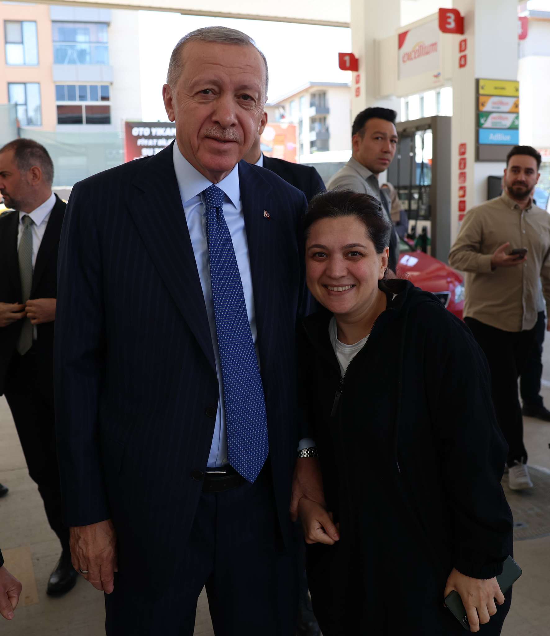 Öğle saatlerinde Kısıklı'daki konutundan ayrılan Erdoğan, Kirazlıtepe Mahallesi Mehmet Akif Ersoy Caddesi'ndeki bir akaryakıt istasyonuna geldi.