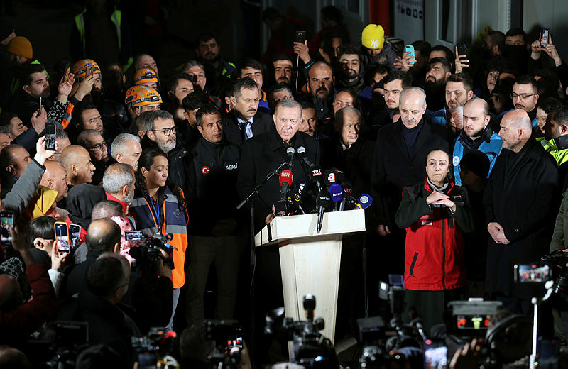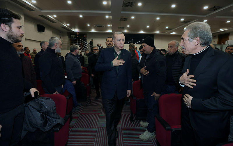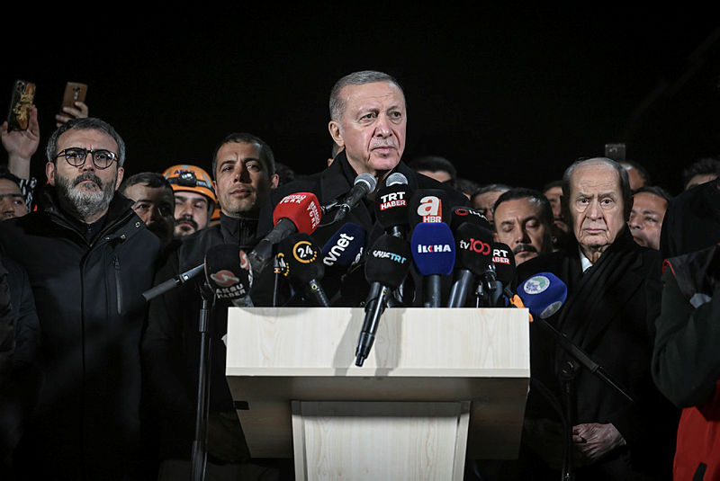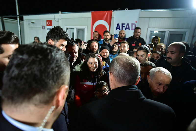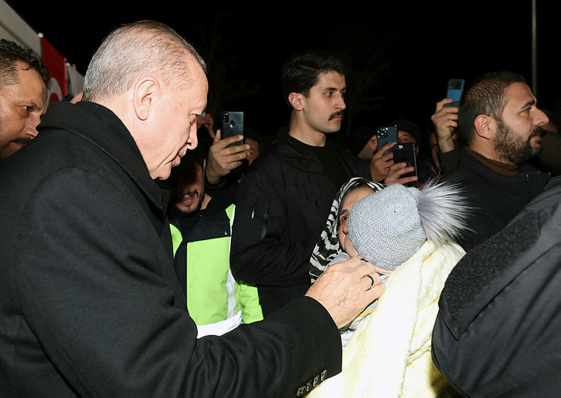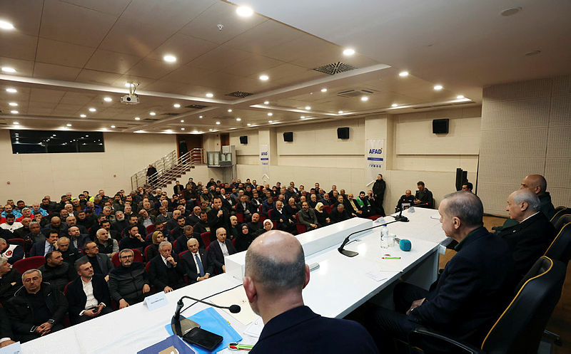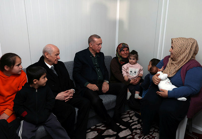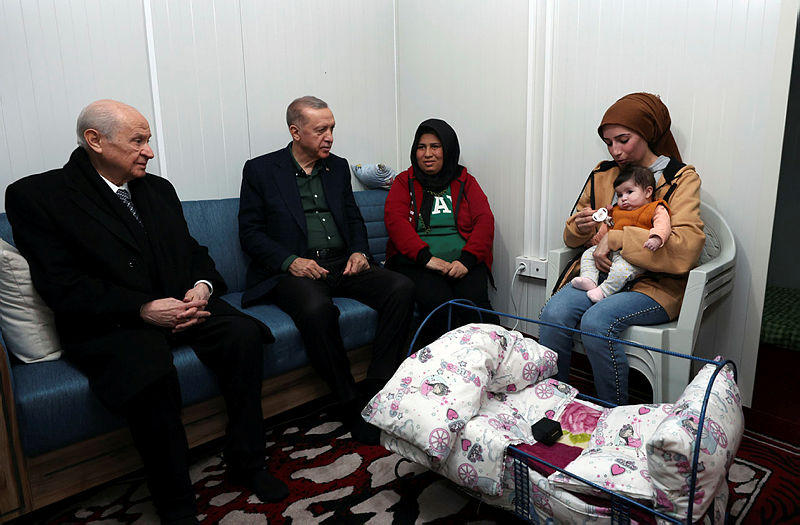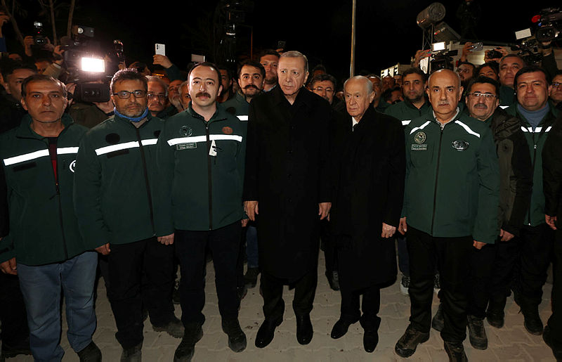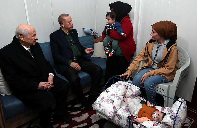 Başkan Recep Tayyip Erdoğan ve MHP lideri Devlet Bahçeli, Osmaniye'de deprem bölgesine geldi. Başkan Erdoğan burada depremzede vatandaşlarla konuşup bilgi aldı. Deprem bölgesinde incelemelerde bulunun Başkan Erdoğan depremde hayatını kaybedenler için dua okudu.