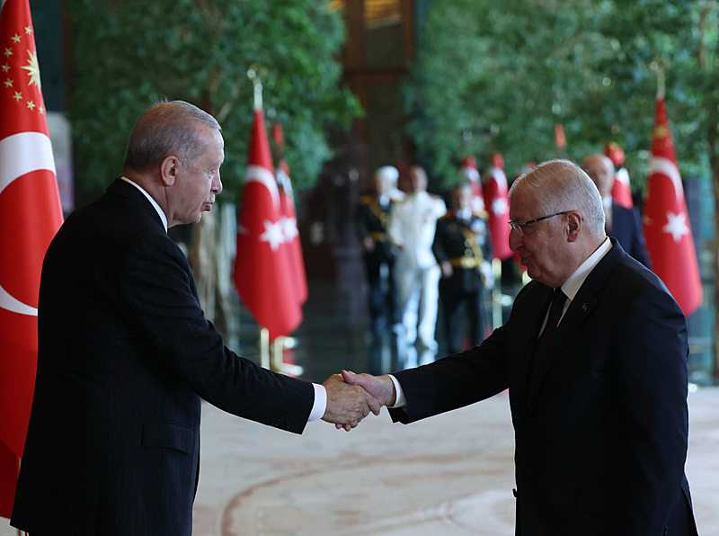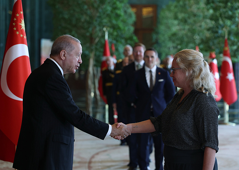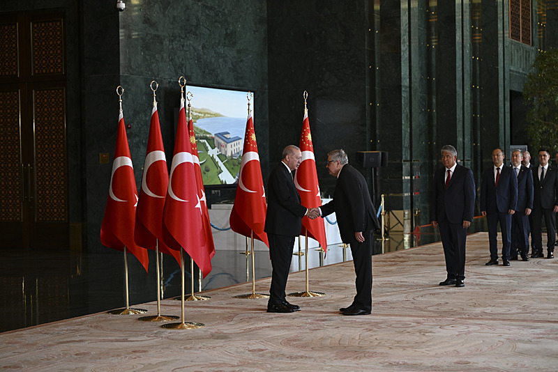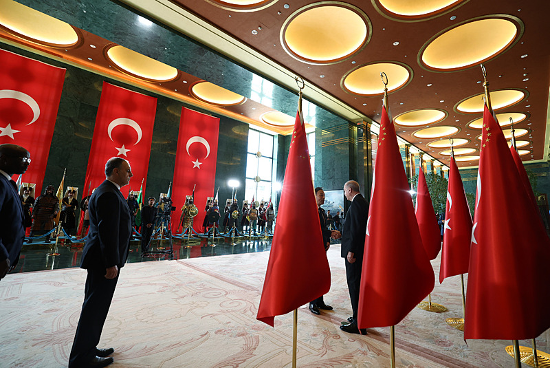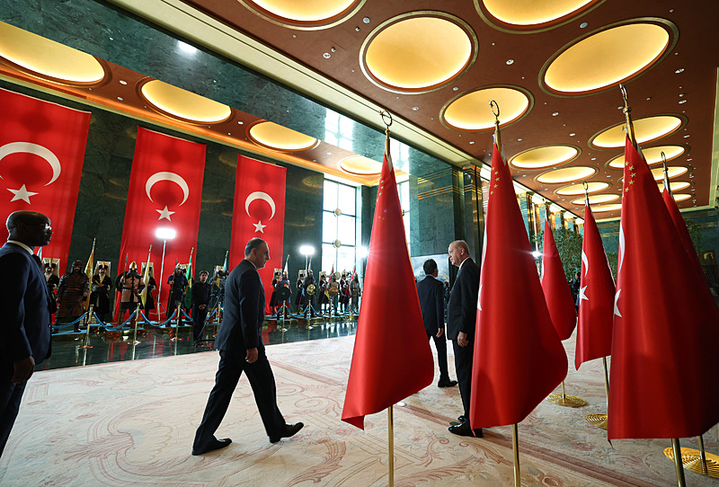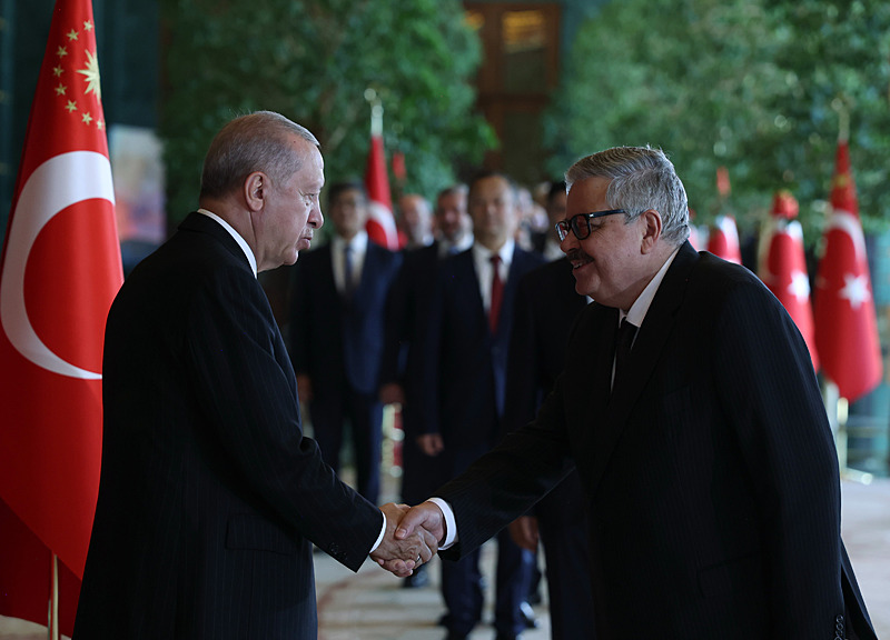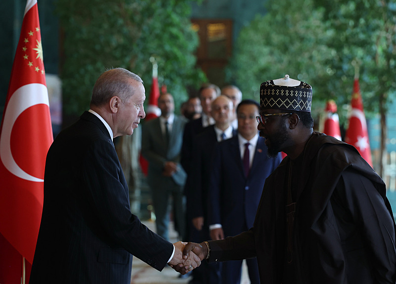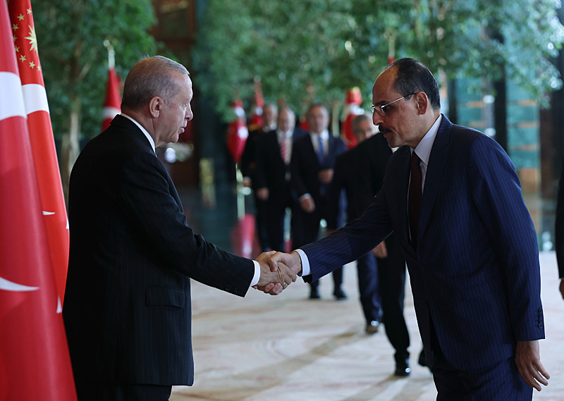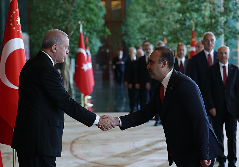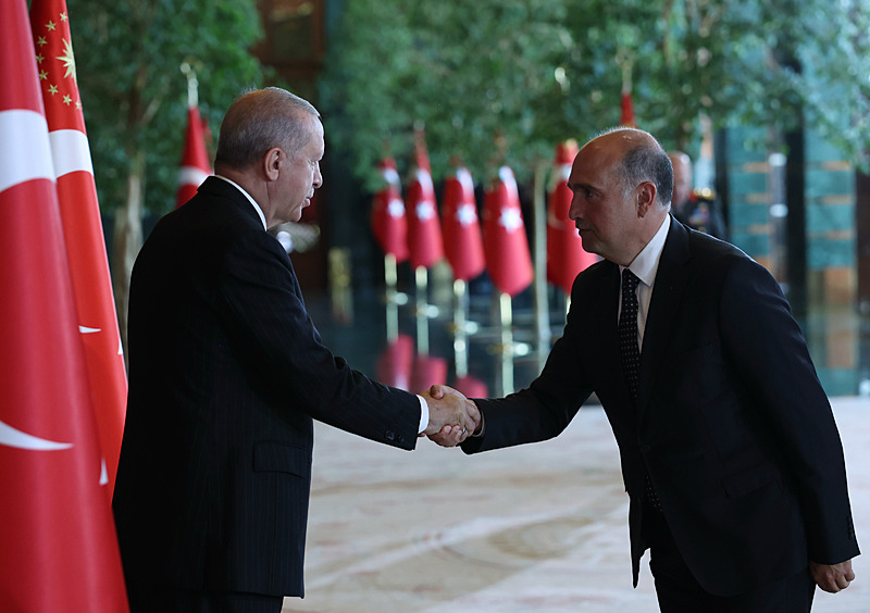 Tebrik töreninde; Cumhurbaşkanlığı Muhafız Alayı Bandosu marşlar seslendirdi. Cumhurbaşkanlığı Külliyesi ana bina girişinde düzenlenen törende; TBMM Başkanı Numan Kurtulmuş, Cumhurbaşkanı Yardımcısı Cevdet Yılmaz, AK Parti Grup Başkanı Abdullah Güler