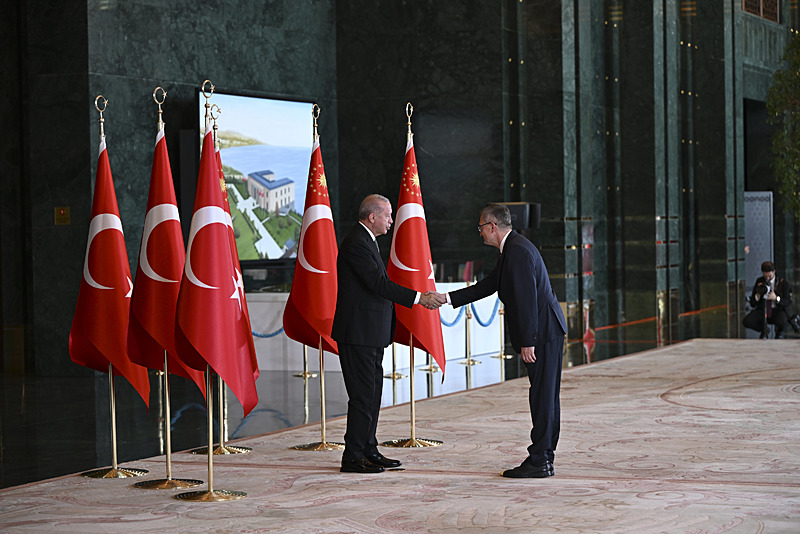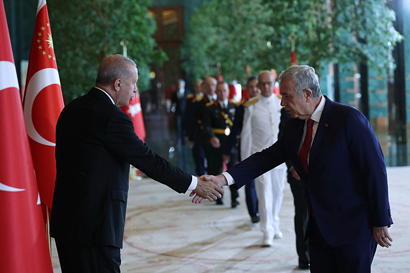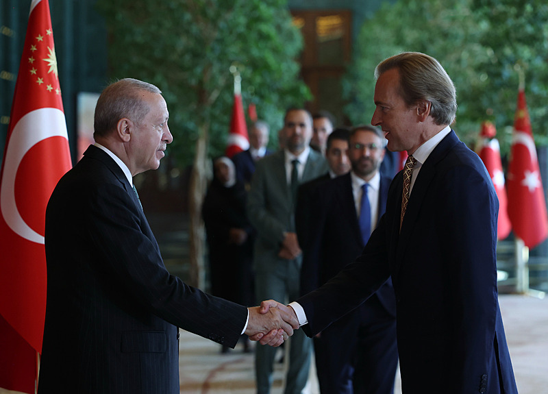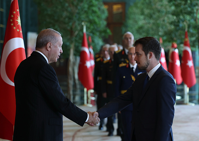 Başkan Erdoğan, 30 Ağustos Zafer Bayramı dolayısıyla Anıtkabir'i ziyaret ettikten sonra Cumhurbaşkanlığı Külliyesi'nde tebrikleri kabul etti. Erdoğan'ın kabulünde, Ahlat Cumhurbaşkanlığı Külliyesi ve İstanbul Finans Merkezi'nin görüntüleri arka ekranlara yansıtıldı.