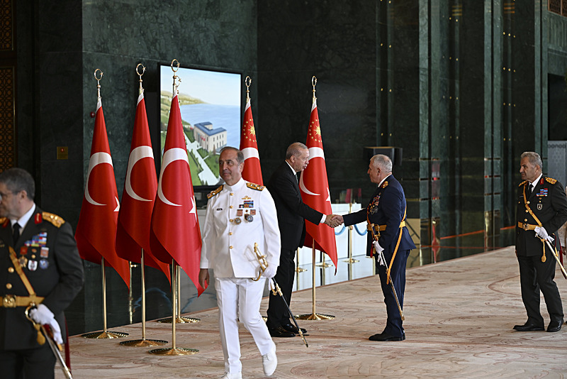 Tören, Ankara'da görevli askeri personeli temsilen her rütbeden asker ile sivil personelin Erdoğan'a tebriklerini sunmasıyla sona erdi.