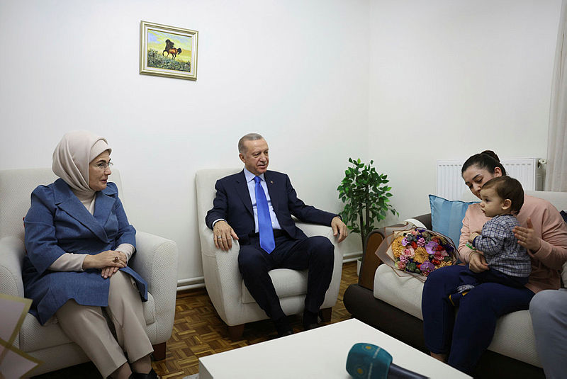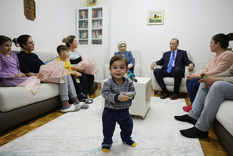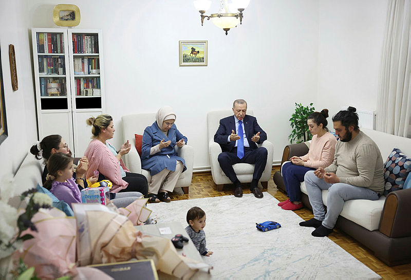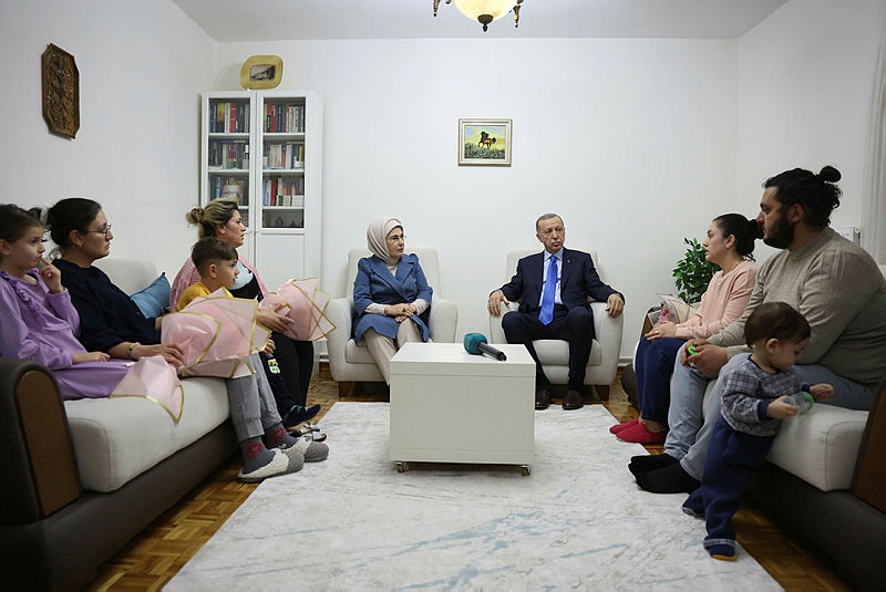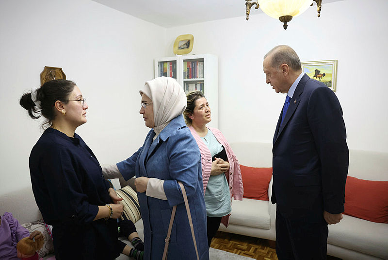 Depremde evi yıkılan, eşi, iki çocuğu ve 8 aylık torununu kaybeden Hülya Çelebi, Kahramanmaraş Afşin'den Ankara'ya gelerek yakınlarının tahsis ettiği evde kalıyor. Başkan Recep Tayyip Erdoğan ve eşi Emine Erdoğan, depremzede aileyi acılı gününde yalnız bırakmayarak ziyaret etti.