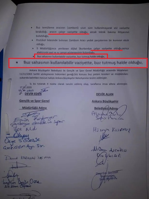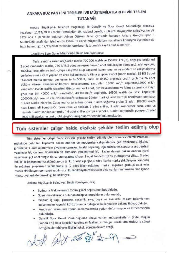 Ancak olayın aslında öyle olmadığı, "atıl" bir şekilde devredildiğini iddia ettiği BELPA Buz Pateni Spor Salonu'nda devirden 23 gün önce turnuva düzenlendiği ortaya çıkmıştı. Ayrıca Gençlik ve Spor Bakanlığı'nın 17 Kasım 2020'de Ankara Büyükşehir Belediyesi'ne devrettiği BELPA Buz Pateni Spor Salonu'nun devir teslim tutanaklarında tüm sistemlerin çalışır halde eksiksiz şekilde teslim edildiği ifadelerine yer verildiği görülmüştü.
