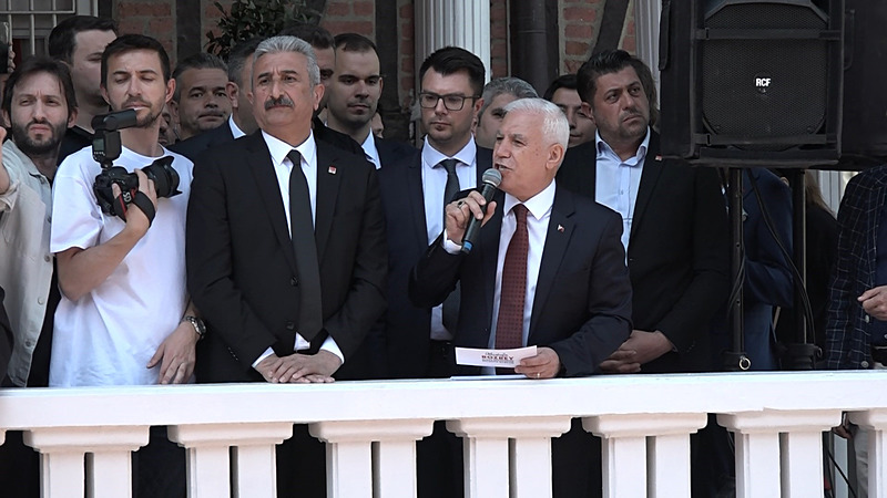 Bursa İl Seçim Kurulu Müdürü Mehmet Us'un, seçimleri kazanan CHP'li Mustafa Bozbey'in mazbata töreninde kalabalığa seslenmesi ve Bozbey için kalabalıktan daha yüksek bir alkış istemesi, kameralara da yansıdı.
