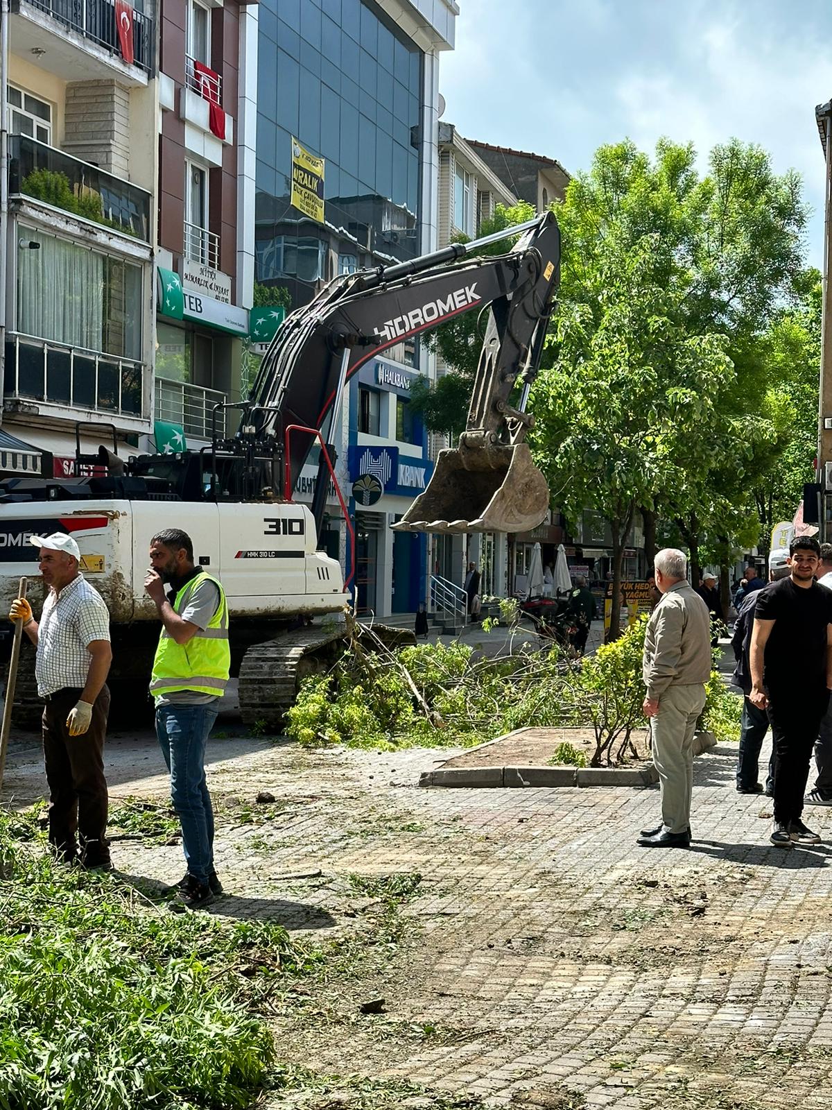 Seçimlerin ardından ise 8 dönemdir belediye başkanlığı yapan Hasan Akgün'ün talimatıyla ilçe merkezinde yer alan ağaçlar, belediye ekipleri tarafından kesilmeye başlandı. Bölgede bulunan ve seçimlerde CHP'ye destek vermeyen esnaf da ağaçların kesileceği gerekçe gösterilerek yerinden edildi.