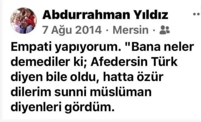 Cumhuriyet Halk Partisi, Kandil'den gelen talimatı dinleyerek PKK'nın siyasi uzantısı DEM ile anlaştı. İstanbul, Mersin ve Balıkesir gibi illerde kirli ittifaka imza attı. Mersin'de CHP'nin Toroslar İlçe Belediye Başkan adayı Abdurrahman Yıldız için yapılan ortak mitingde, terör sloganları atıldı. Daha önce sosyal medyadaki paylaşımlarında "Affedersiniz Türk diyen bile oldu" diyerek rahatsızlığını dile getiren Yıldız'ın teröristbaşı Öcalan'ın akrabası olduğu ortaya çıktı.