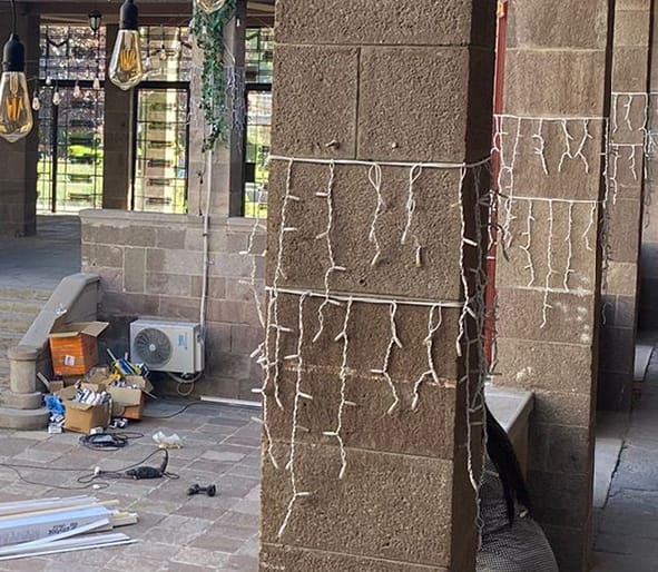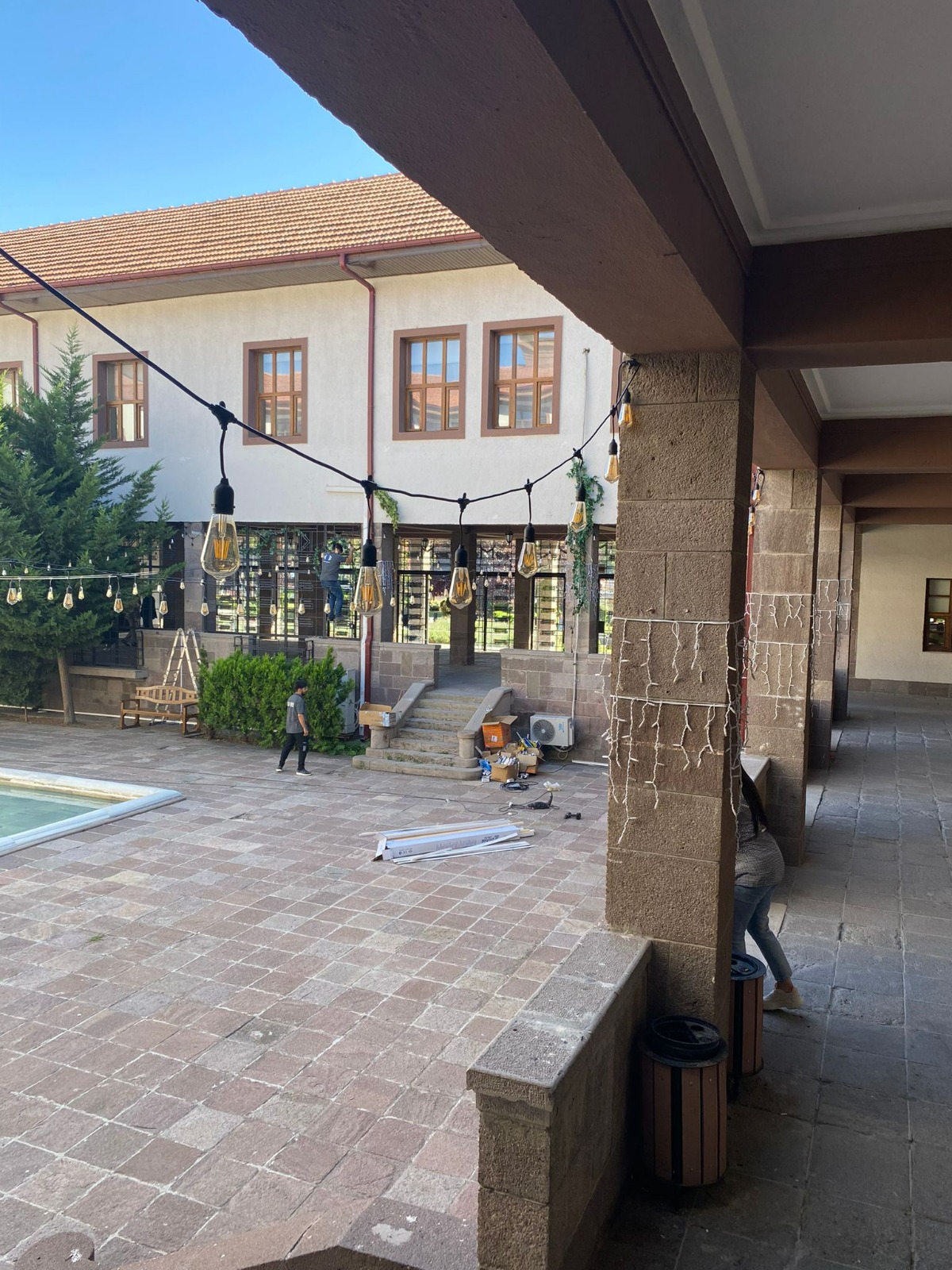 100 yaşındaki binanın tarihi taş döşemesinin oyulduğu. Ve tarihi avluda delikler açıp ışıklandırıldığı öğrenildi. Tarihi yapının şu anda makinelerle kırılıp düğün etkinliklerinde kullanmak üzere değiştirildiği bildirildi.