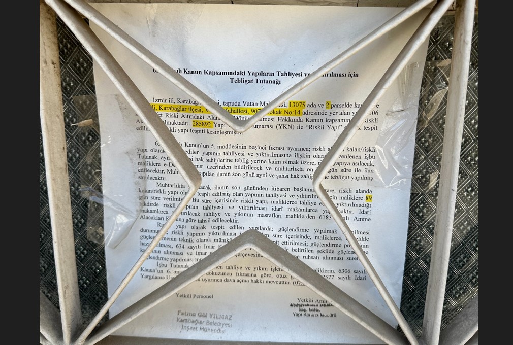 Bu durum çevre sakinlerinde büyük tedirginlik ve korku yaratıyor. Mahalle sakinlerinin tek isteği CHP'li Karabağlar Belediyesi'nin bölgede bulunan 34 konuttan 13'ünü de riskli yapı ilan ederek boşaltılmasını sağlaması.