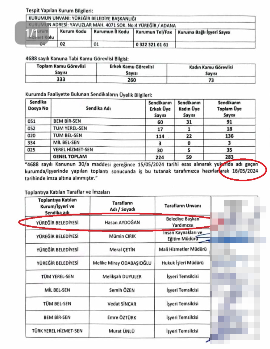 CHP Genel Başkanı Özgür Özel'in "Akraba ataması geri alındı" dediği Adana'nın Yüreğir belediyesinde Başkan Ali Demirçalı'nın, başkan yardımcısı olarak atadığı yeğeni Hasan Aydoğan'ın görevden almadığı ortaya çıktı. Aydoğan'ın 16 Mayıs 2024 tarihli resmi evrakta imzasının bulunması gözlerden kaçmadı.
