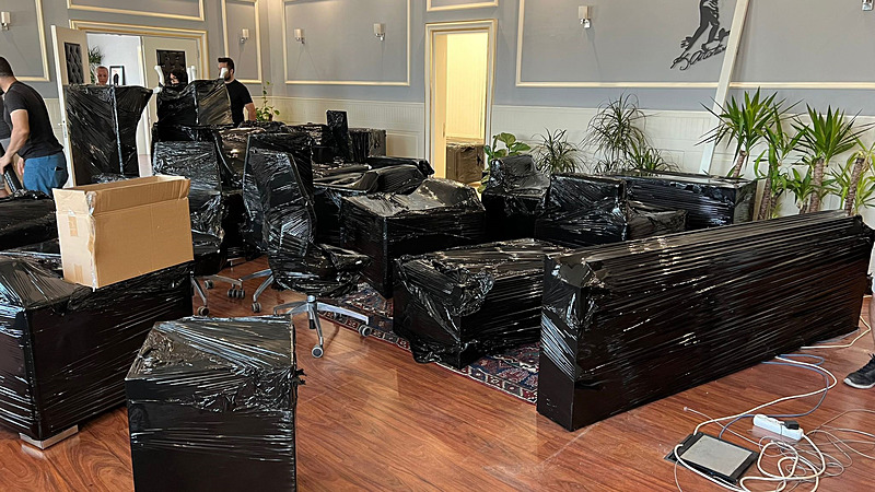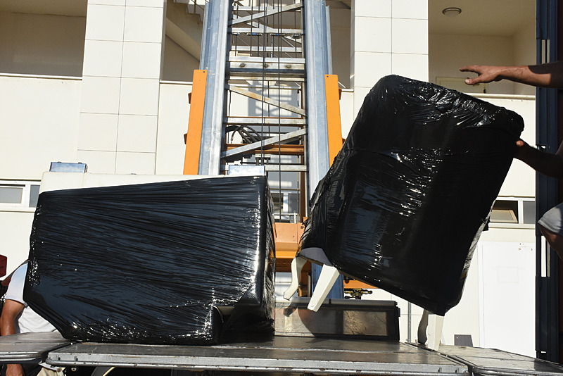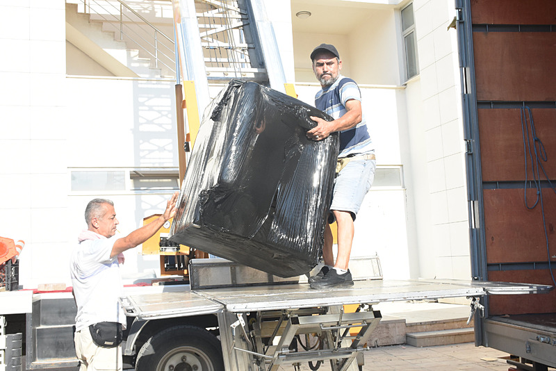 Nakliye firması ekipleri, makam odasında haczedilen eşyaları paketleyerek kamyona taşıdı. Hacizli eşyalar, yediemin deposuna götürüldü.