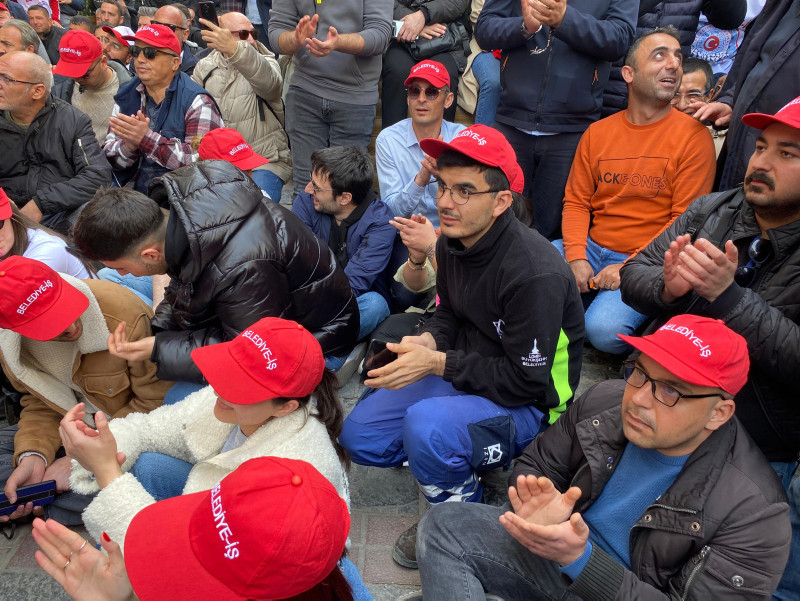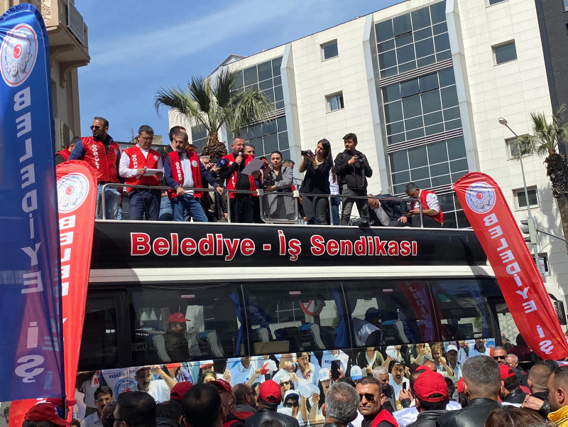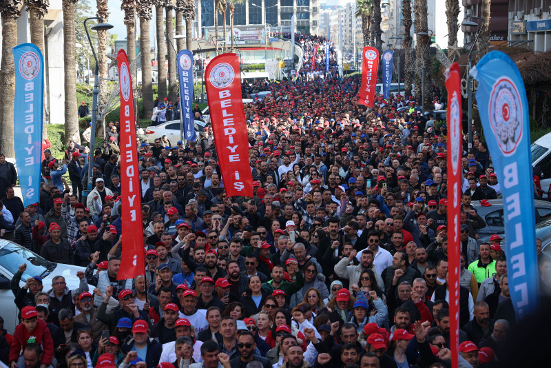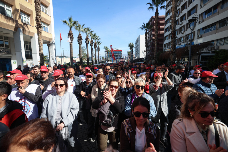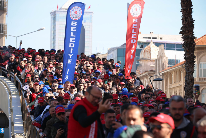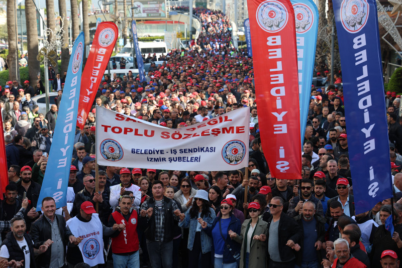 Sendikaya üye işçiler, kısa süre önce yarım gün, ardından da 2 saat iş bıraktı. Sonrasında taraflar tekrar masaya oturdu ancak sonuç çıkmadı. Bunun üzerine Belediye İş Sendikası yeniden eylem kararı aldı. İzmir Büyükşehir Belediyesi'nin çeşitli birimlerinde görev yapan binlerce işçi, Konak Pier önünde toplandı.