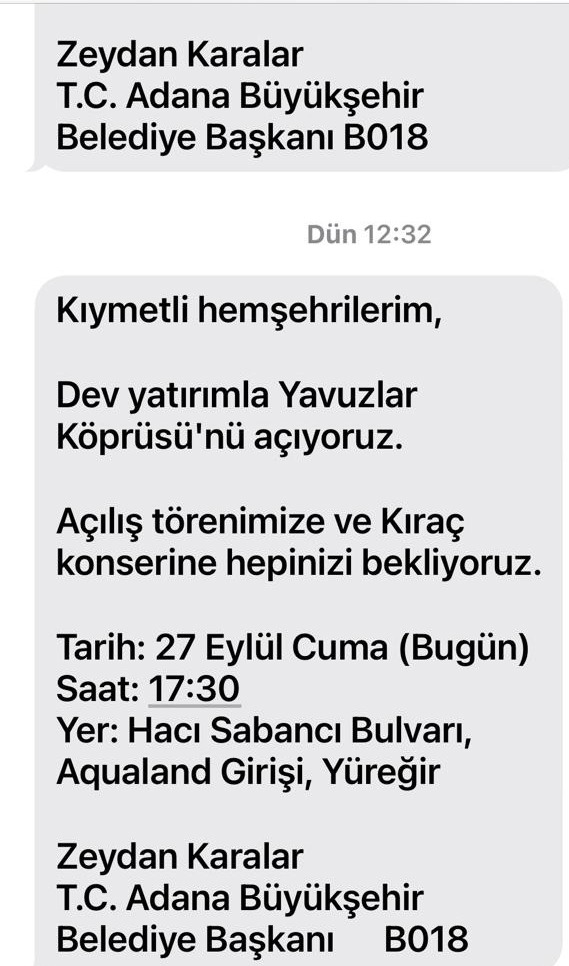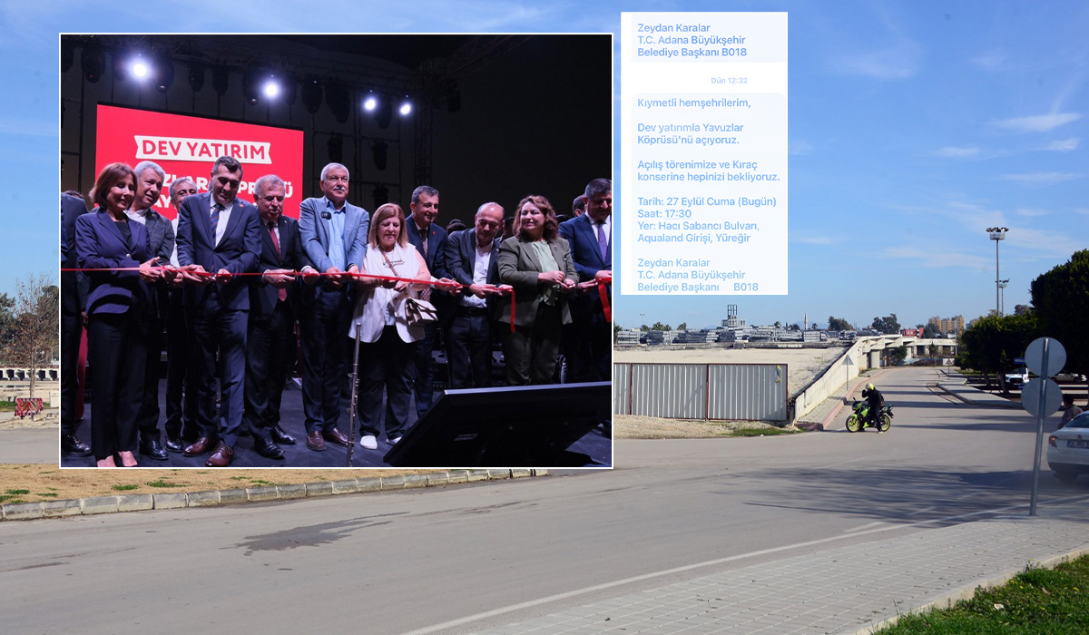 Adana'da 2014-2019 arasında Büyükşehir Belediye Başkanlığı yapan MHP'li Hüseyin Sözlü, Seyhan Nehri üzerinden Yüreğir ve Seyhan'ı birbirine bağlayacak Yavuzlar Köprüsü'nün yüzde 75'ini tamamladı. Ancak CHP'li Adana Büyükşehir Belediye Başkanı Zeydan Karalar göreve gelir gelmez "Gereksiz" diyerek körünün inşasını durdurma kararı aldı. 5.5 yıl sonra çark eden Karalar ise sadece yüzde 25'ini tamamladığı köprüyü "Dev yatırım" diyerek hizmete açtı.