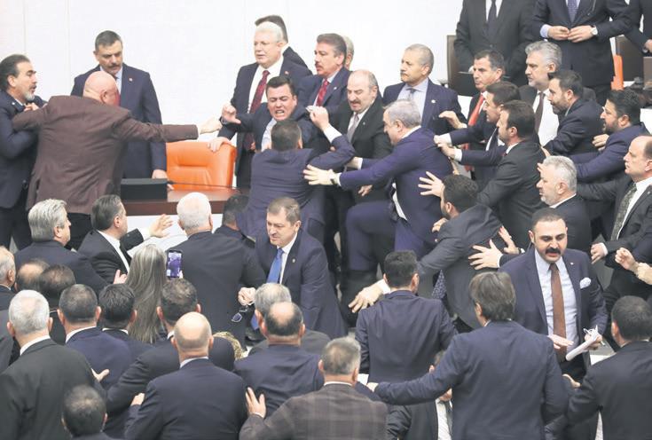 Gürlek bunun üzerine ayağa kalkıp Başarır ile selamlaştı. Daha sonra da Emir, odaya girdi. Emir, içeride bulunan AK Parti ve MHP'li yöneticiler ile milletvekillerinin ellerini tek tek sıktı. Emir, bakanlarla da tokalaştı. Bu olaydan kısa bir süre sonra Genel Kurul tekrar toplandı. Ancak kapalı kapılar ardında tokalaşan CHP'nin, Genel Kurul'a girince tavrı bambaşkaydı. İçeride bakanlar ile tokalaşıp başarı dileyenler kürsüyü işgal etti. Çıkan kavgada yumruklar havada uçuştu.
