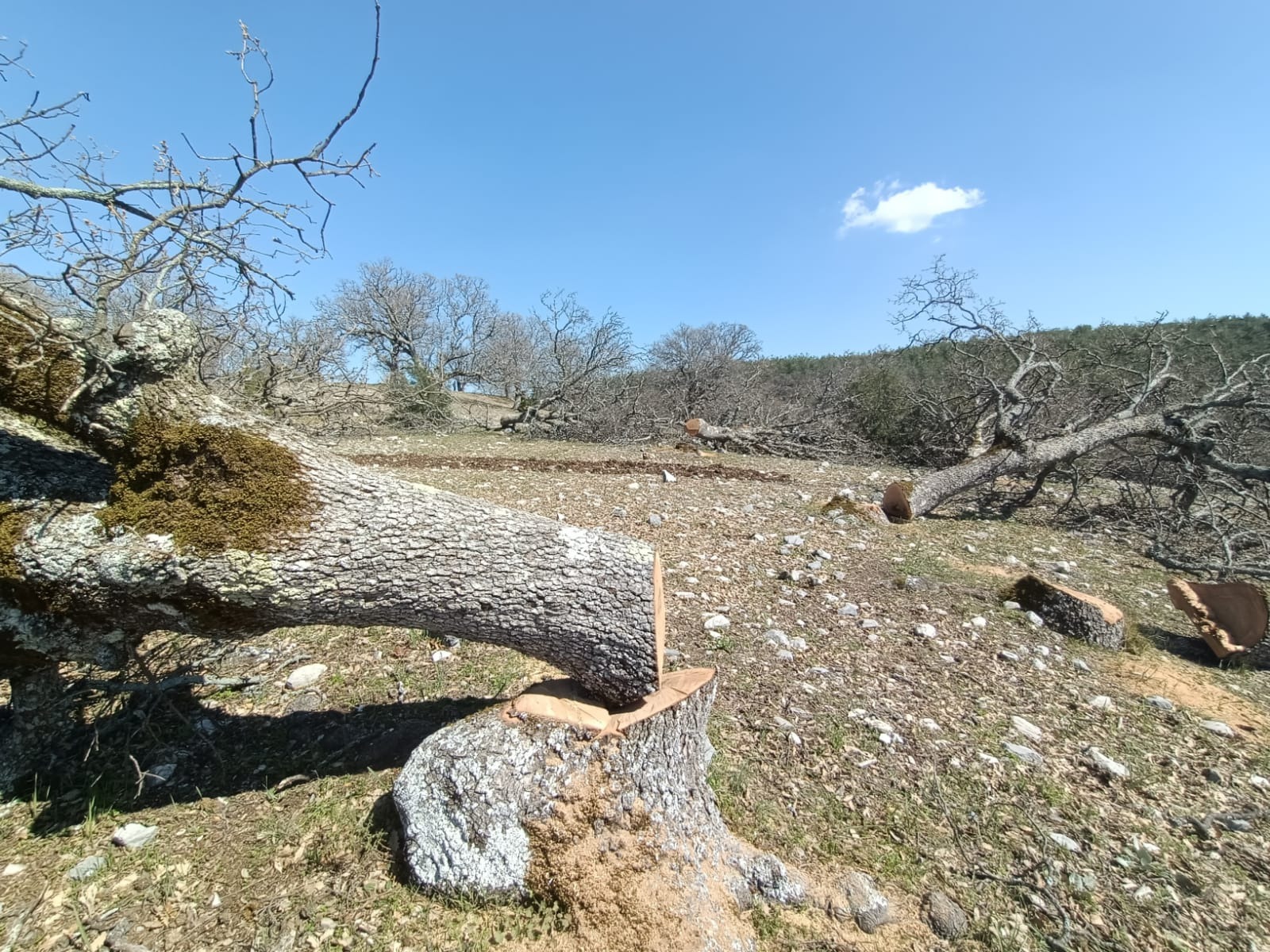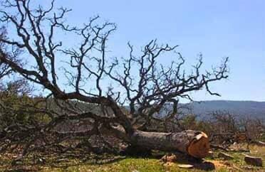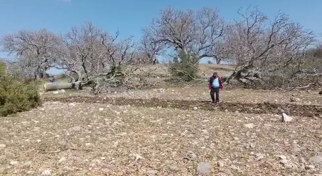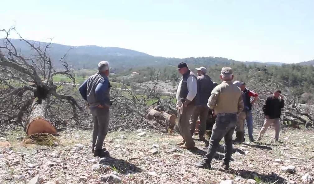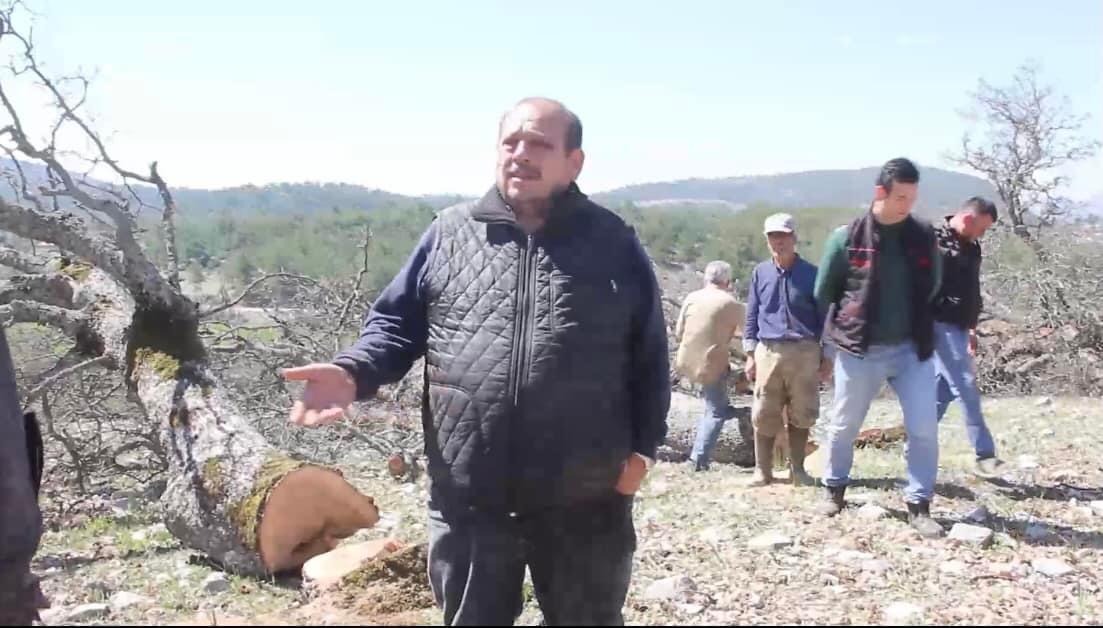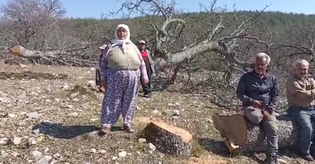 Geçen Mart'ta araziye gelen Büyükşehir Belediyesi Ekipleri, köylülerin belediyeye geçmeden önce yıllardır ortak alan olarak kullandıkları arazideki asırlık palamut ağaçlarını kesti.
