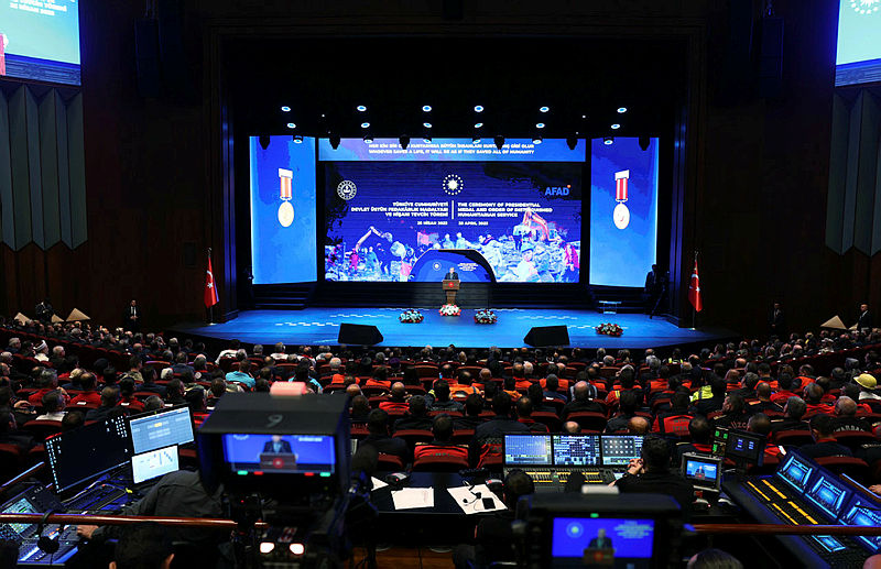 Beştepe Millet Kongre ve Kültür Merkezi'nde Devlet Üstün Fedakarlık Madalyası Tevcih Töreni düzenlendi. Törende deprem bölgelerinde arama kurtarma faaliyeti yapan 218'i Türk, 116'sı yabancı 334 kişi Devlet Üstün Fedakarlık Madalyası ve Nişanı tevcihine layık görüldü. Madalyaları sahiplerine takdim eden Başkan Recep Tayyip Erdoğan, "Yerli-yabancı toplam 55 bin kişiye inşallah bu madalya ve nişanları takdim edeceğiz." dedi. Takdim edilen madalyaların arka yüzünde yer alan yazı ise yüreklere dokundu.