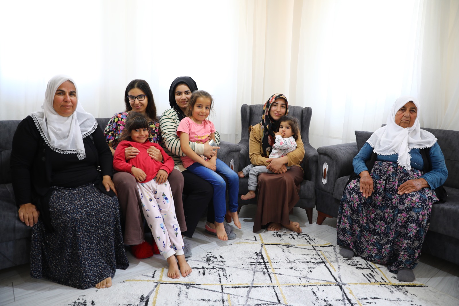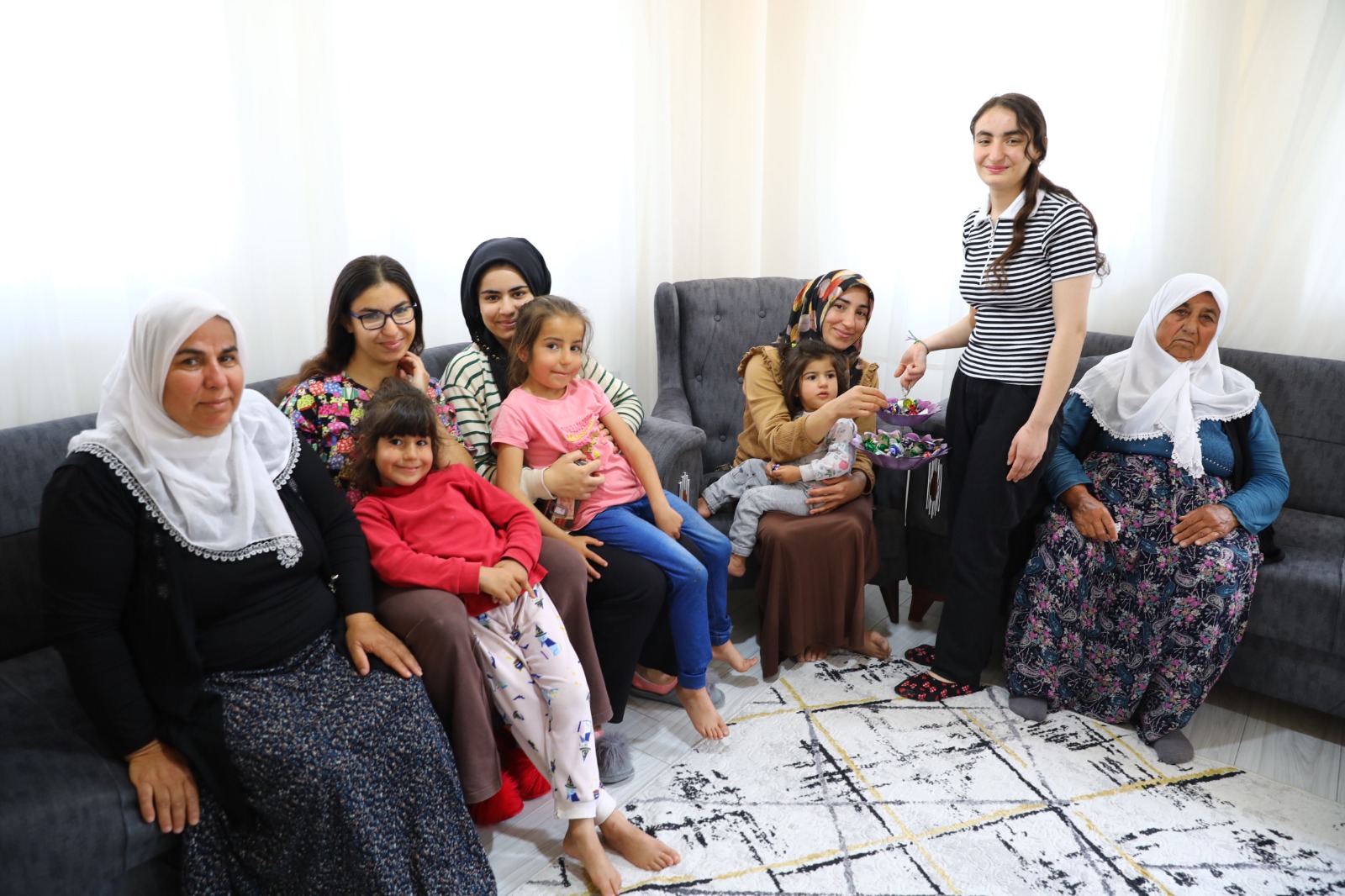 Sözer ailesi TOKİ tarafından yapılan köy evinde misafirlerini ağırladı, el öpmeye gelen çocuklara şeker dağıttı. 5 çocuk annesi Vedat Sözer (49), "Bir yıl sürmeden yeni yuvamıza taşındık.