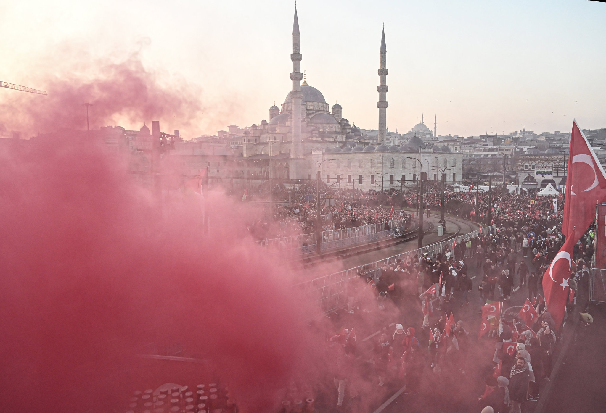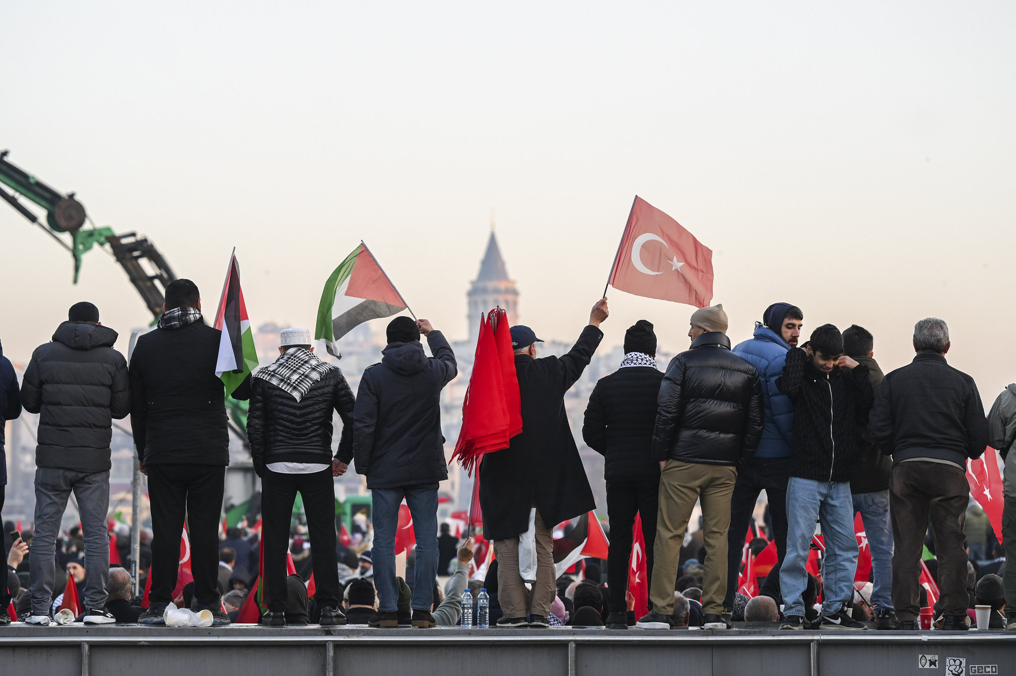 Gazze'de 1.5 yıldır süren İsrail soykırımına dur demek için yeni yılın ilk sabahında Galata Köprüsü üzerinde buluşan yüz binler vicdanın sesi oldu.