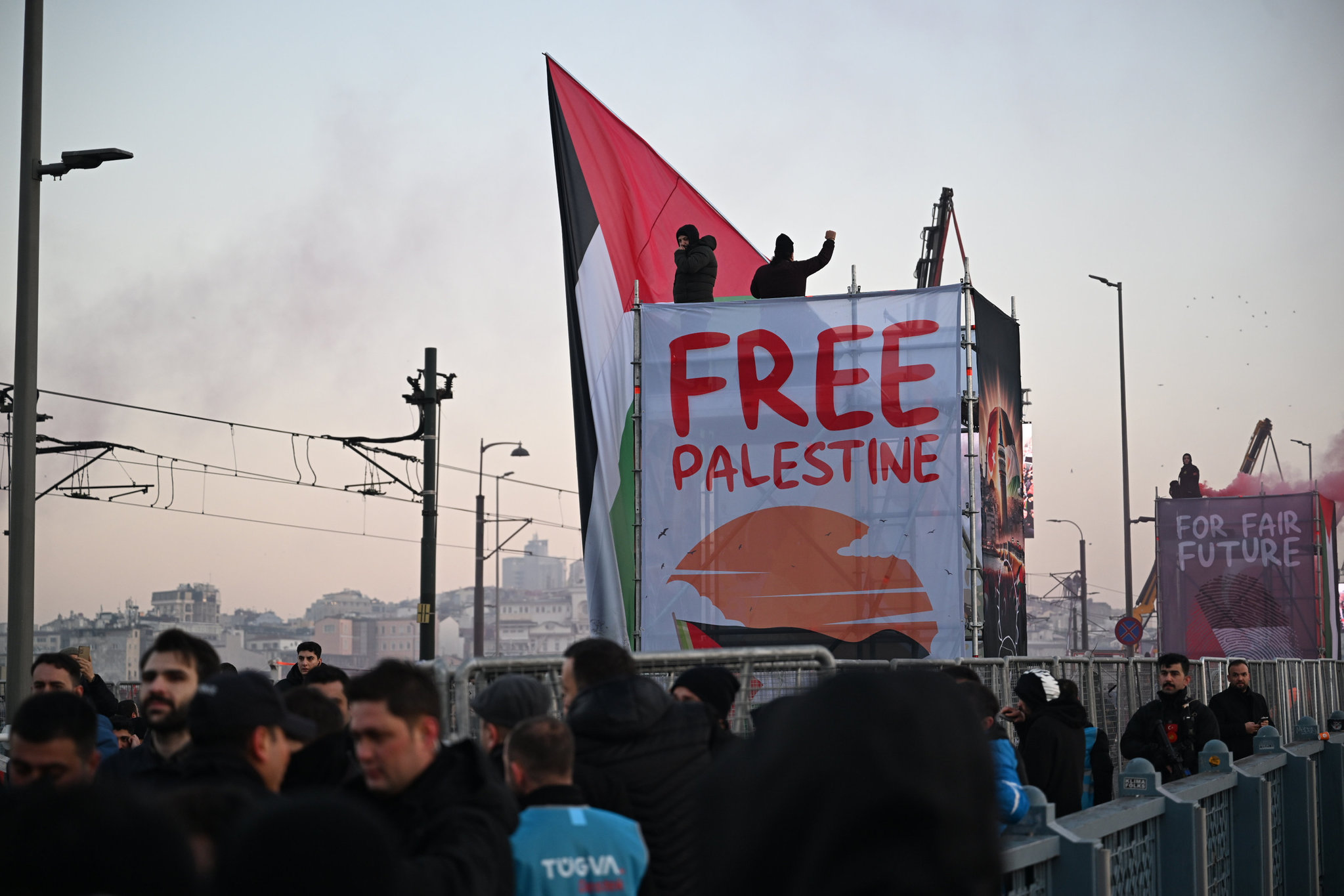 İsrail zulmü altındaki Gazze'de 7 Ekim 2023'ten bu yana çoğunluğu kadın ve çocuk 45 binden fazla insan katledildi. Dünyanın 3 maymunu oynadığı katliam, Gazze'yi en büyük mezarlığa çevirdi. Siyonist vahşete ilk günden bu yana 'dur' diyen Türkiye, yeni yılın ilk gününde de Galata Köprüsü'nden insanlığın sesini dünyaya haykırdı.