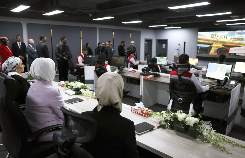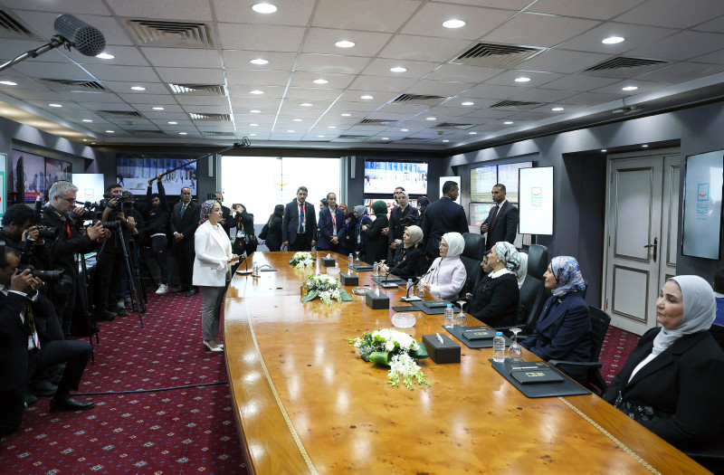 İlk olarak Mısır Kızılayı'nı ziyaret eden Emine Erdoğan çalışmalara ilişkin bilgi aldı ve Gazze'ye yapılan yardımlara ilişkin tanıtım filmini izledi. Ziyaret sonunda Emine Erdoğan, Entissar Amer, Bakan Göktaş ve aynı zamanda Mısır Kızılayı Başkanlığı görevini de yürüten el Kabbaj, Türk Kızılay Başkanı Fatma Meriç Yılmaz ve Mısır Kızılayı personeliyle fotoğraf çektirdi.