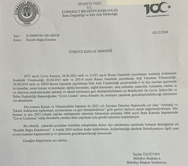 Ankara'da CHP'li Belediye Başkanı Erdal Beşikçioğlu'nun yönetimindeki Etimesgut Belediyesi, Türk Kızılayı'na ait kıyafet bağış kutularını zabıta ekipleri ve belediyeye ait iş makineleri kullanarak kaldırdı. Türk Kızılayı ekiplerince belgelenen görüntülerde, belediyenin müdahalesi anbean kaydedildi. Görüntülerde belediye ile anlaşması bulunan özel bir firmaya ait giysi toplama kutularına dokunulmadığı da dikkat çekti.