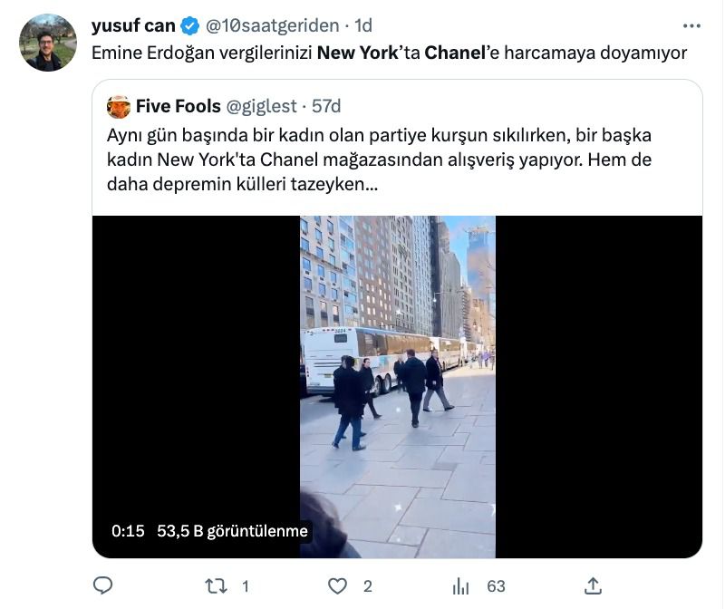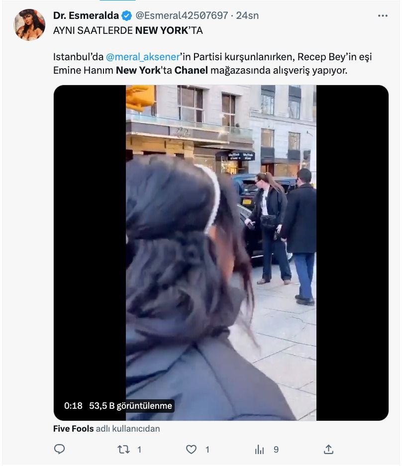 FETÖ'cü hesaplar, Emine Erdoğan'ın BM Genel Kurulu öncesi 29 Mart günü kızı Sümeyye Erdoğan Bayraktar ve torunu ile Central Park'a yürüyüşe gitmesini, "Emine Erdoğan, Chanel mağazasında alışveriş yaptı" şeklinde gerçek dışı iddialarla paylaştı.