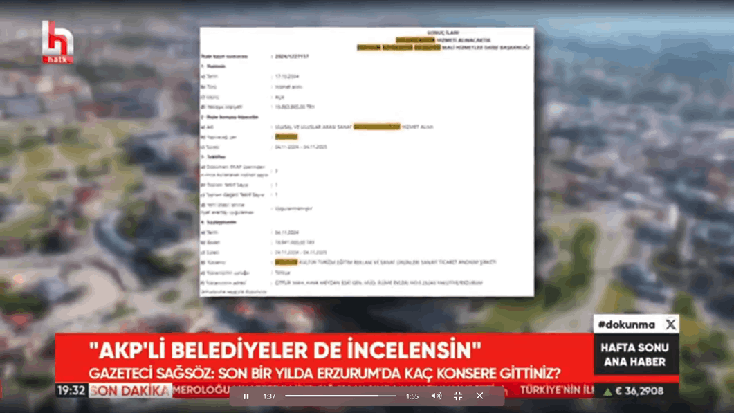 CHP'li belediyelerin skandal konser harcamalarının üstünü örtmek isteyen Halk TV, Erzurum Büyükşehir Belediyesi'nin 85 milyon TL'ye konser verdiğini öne sürdü.