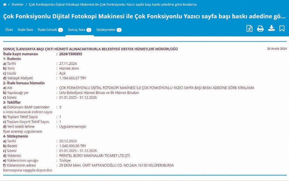 İzmir'de CHP'li Urla Belediyesi 'çalışanları fotokopiyi bile çekemiyor' dedirten cinsten bir ihaleye çıktı. Urla Belediyesi çıktığı ilk fotokopi çekme ihalesine talipli çıkmayınca cazip hale getirmek adına ihalenin hizmet süresini 2 yıla, baskı adedini de 1 milyondan 1 milyon 600 bine çıkarttı. 27 Kasım 2024'te çıkılan "Çok fonksiyonlu dijital fotokopi makinesi ile çok fonksiyonlu yazıcı sayfa başına baskı adedine göre kiralama" ihalesi sonuçlandı.