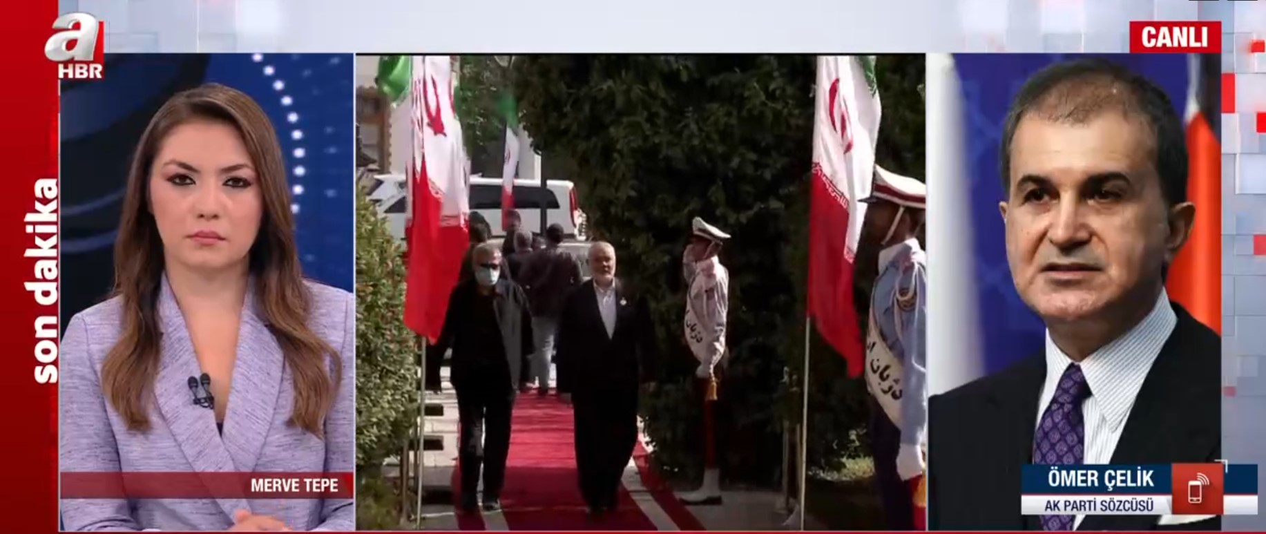 AK Parti Genel Başkan Yardımcısı ve Parti Sözcüsü Ömer Çelik, Hamas Siyasi Büro Şefi İsmail Heniyye'nin İran'ın başkenti Tahran'da şehit edilmesine yönelik A Haber'e açıklamalarda bulundu.