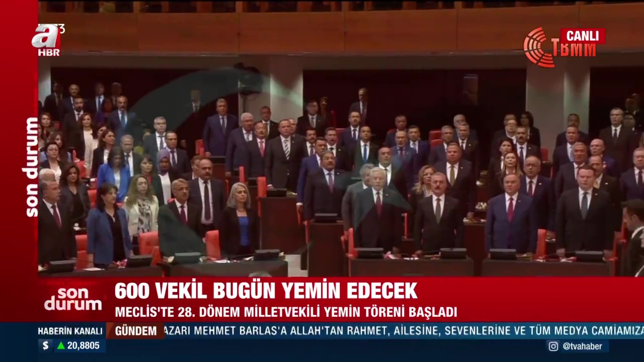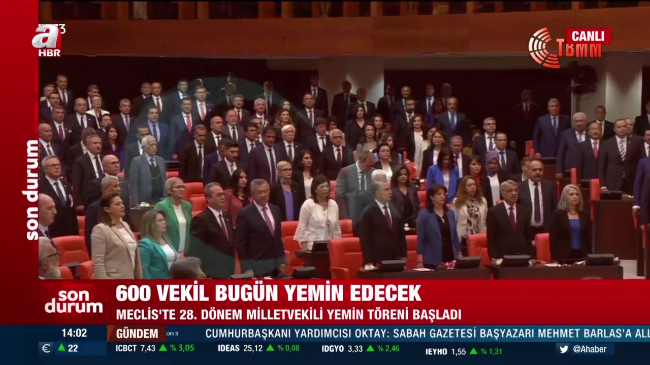 Tarihi seçimin ardından TBMM'de hazırlıklar tamamlandı. 28. Dönem Milletvekili Ant İçme Töreni başladı. İstiklal Marşı'nın okunduğu sırada ise Yeşil Sol Parti sıralarından meclise giren HDP'li vekiller yine dudaklarını dahi kıpırdatmadı.